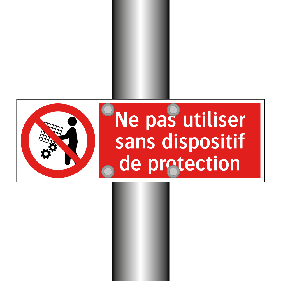 Panneau d'interdiction avec le texte : "Ne pas utiliser sans dispositif de protection" et une symbolique claire.