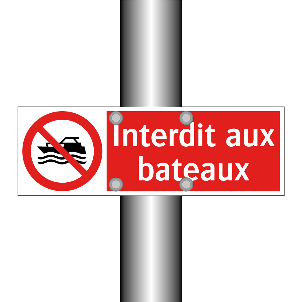 Panneau d'interdiction avec le texte : "Interdit aux bateaux" et une symbolique claire.