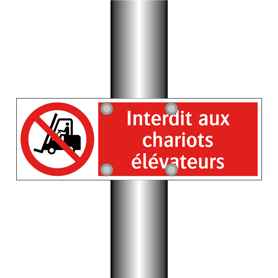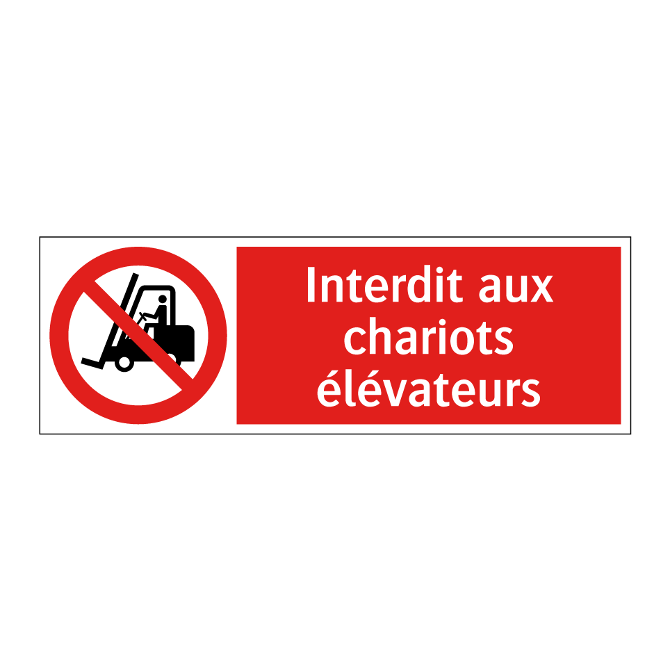 Panneau d'interdiction avec le texte : "Interdit aux chariots élévateurs" et une symbolique claire.