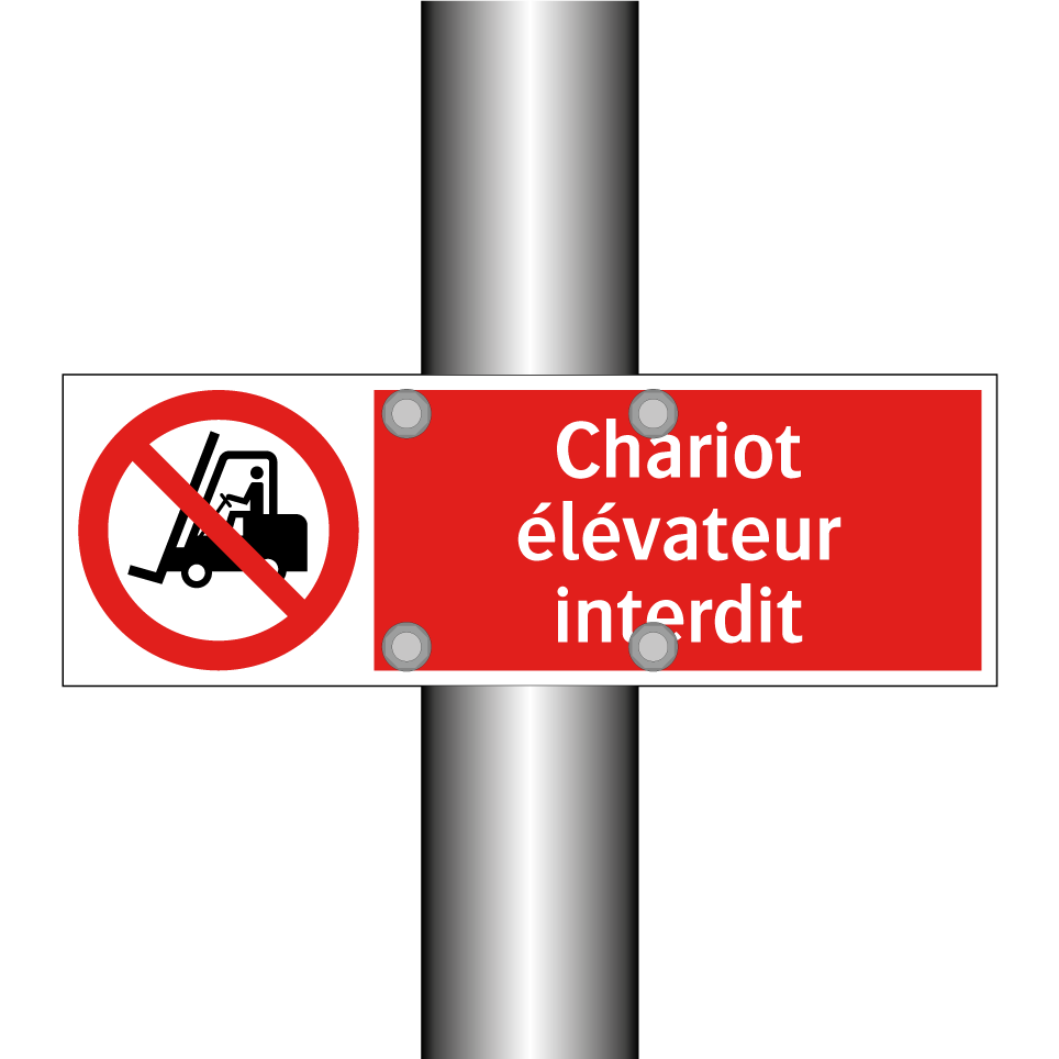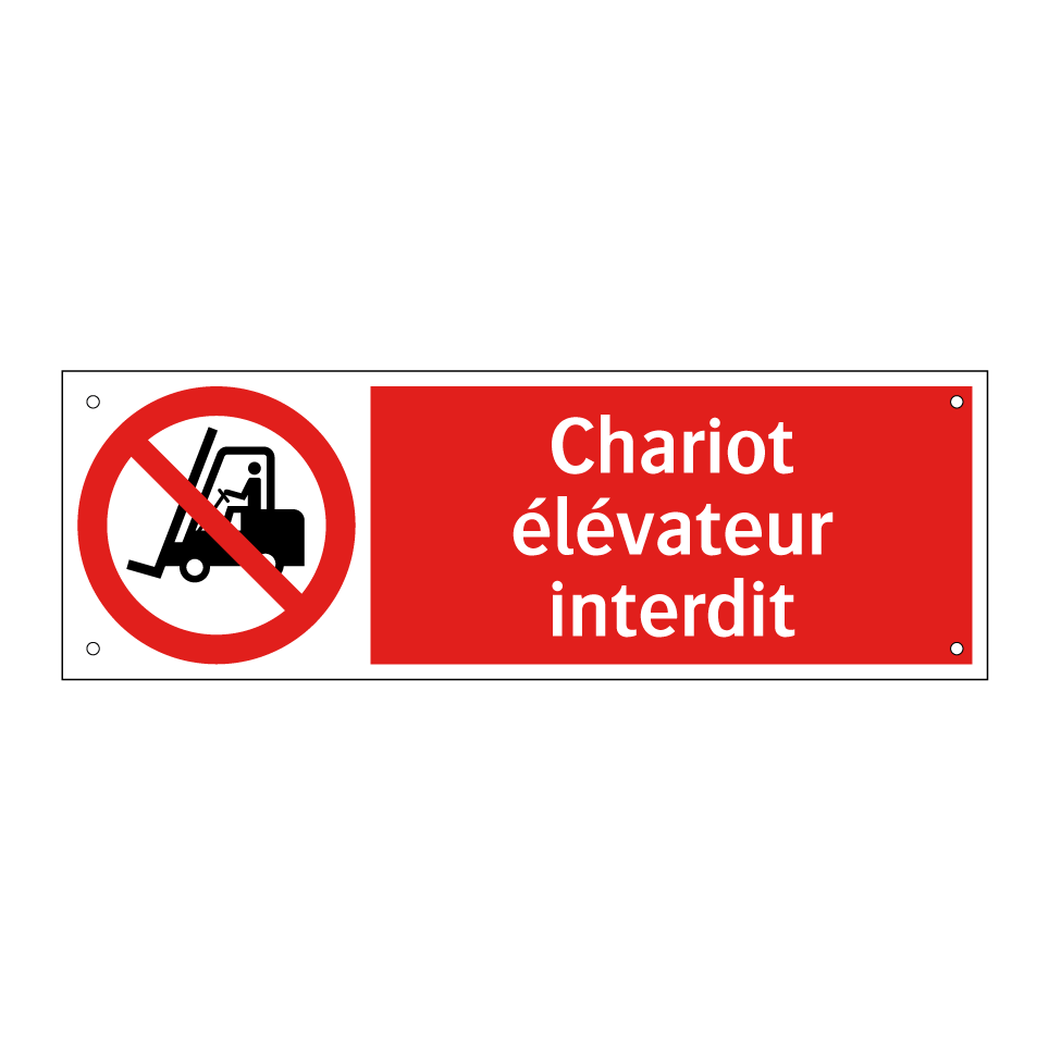 Panneau d'interdiction avec le texte : "Chariot élévateur interdit" et une symbolique claire.