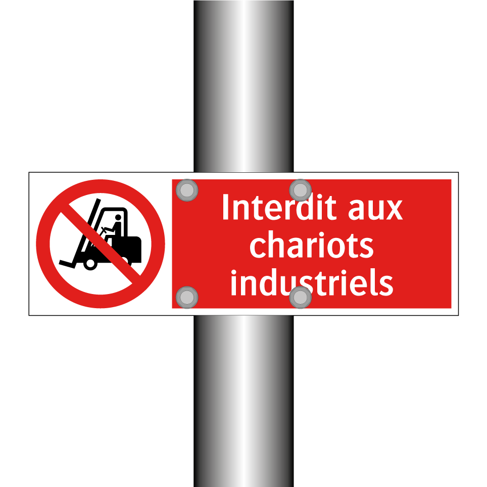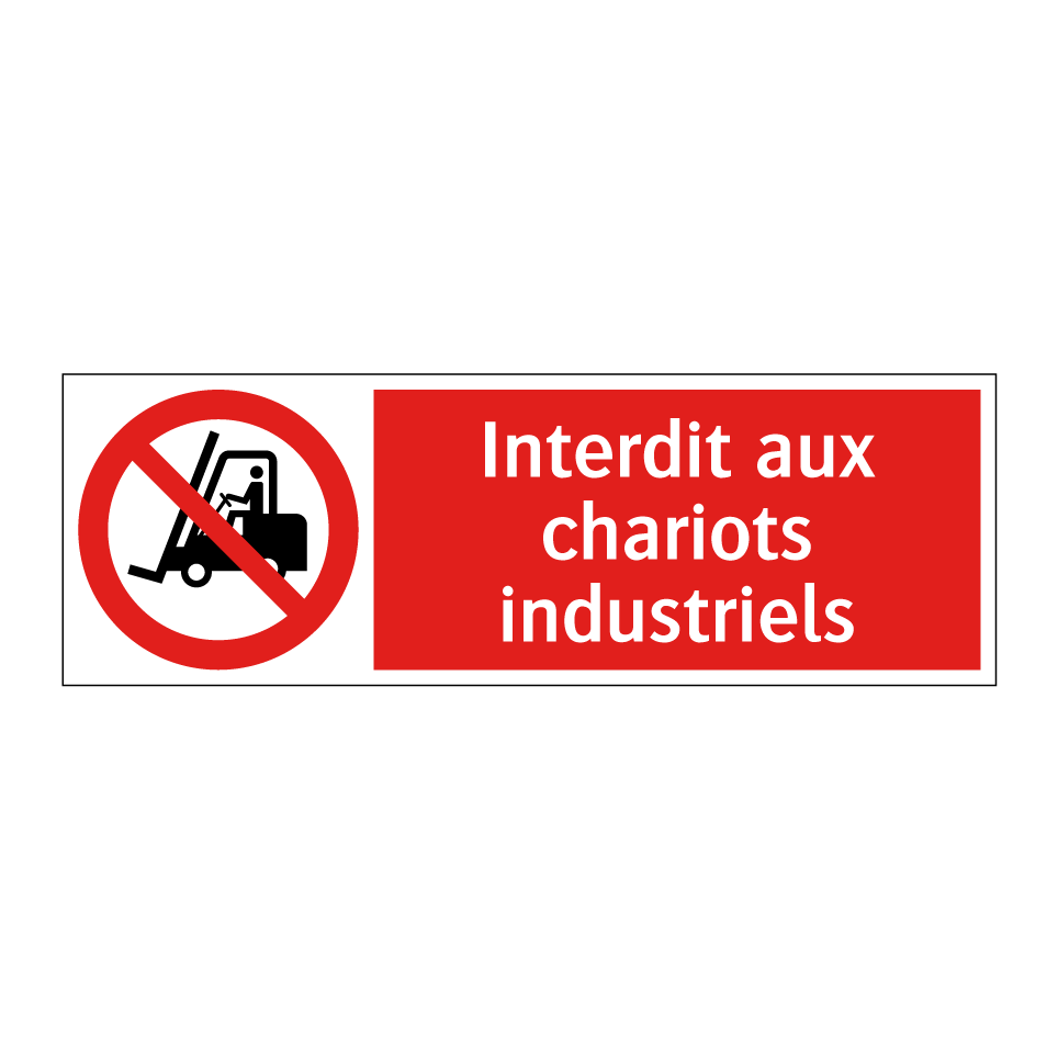 Panneau d'interdiction avec le texte : "Interdit aux chariots industriels" et une symbolique claire.