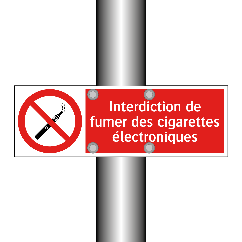Panneau d'interdiction avec le texte : "Interdiction de fumer des cigarettes électroniques" et une symbolique claire.