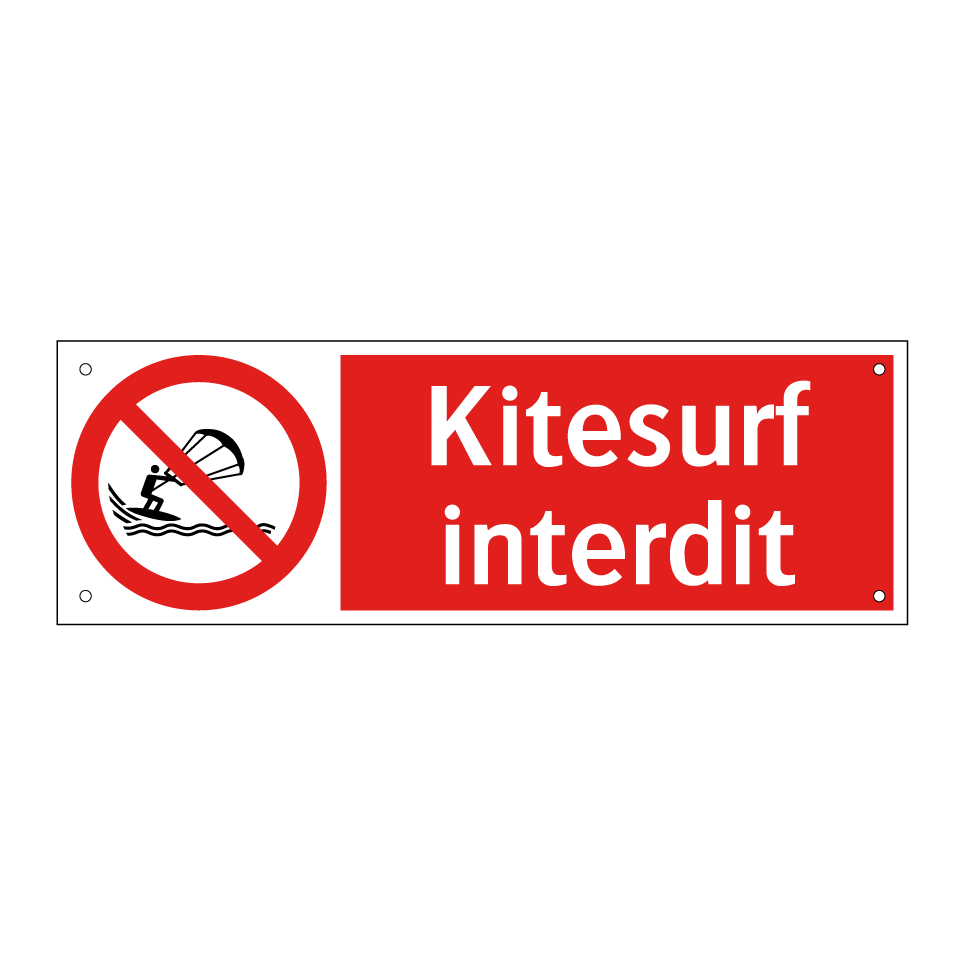 Panneau d'interdiction avec le texte : "Kitesurf interdit" et une symbolique claire.