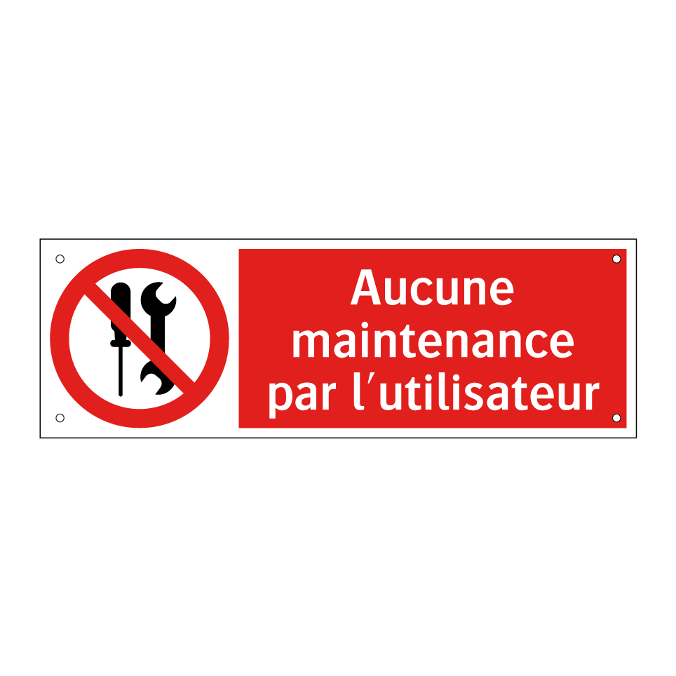 Panneau d'interdiction avec le texte : "Aucune maintenance par l'utilisateur" et une symbolique claire.