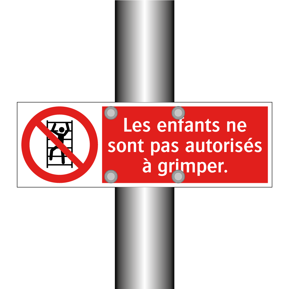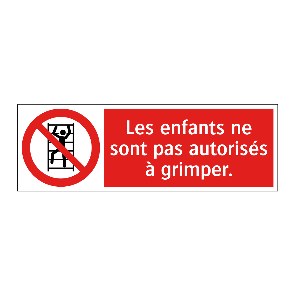 Panneau d'interdiction avec le texte : "Les enfants ne sont pas autorisés à grimper." et une symbolique claire.