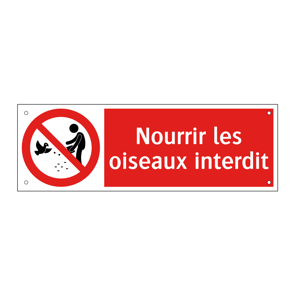 Panneau d'interdiction avec le texte : "Nourrir les oiseaux interdit" et une symbolique claire.