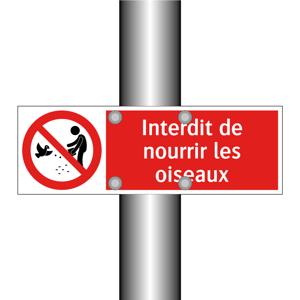 Panneau d'interdiction avec le texte : "Interdit de nourrir les oiseaux" et une symbolique claire.