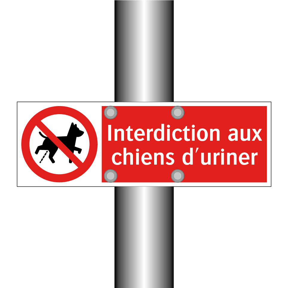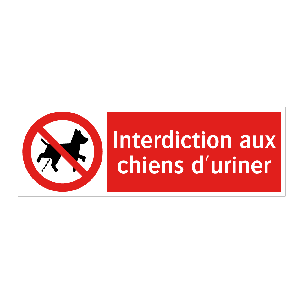 Panneau d'interdiction avec le texte : "Interdiction aux chiens d'uriner" et une symbolique claire.