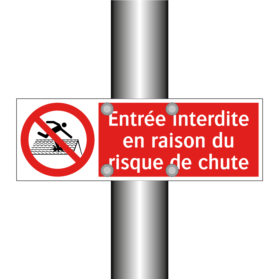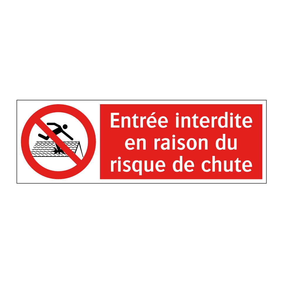 Panneau d'interdiction avec le texte : "Entrée interdite en raison du risque de chute" et une symbolique claire.