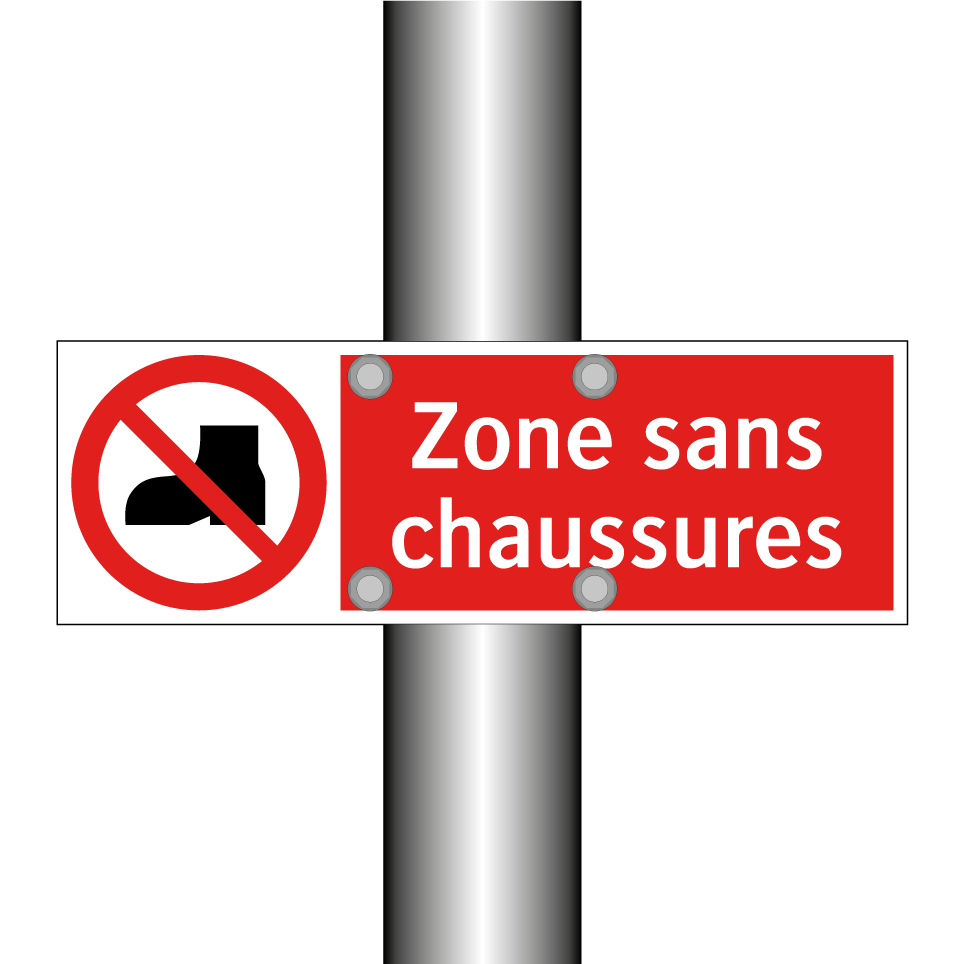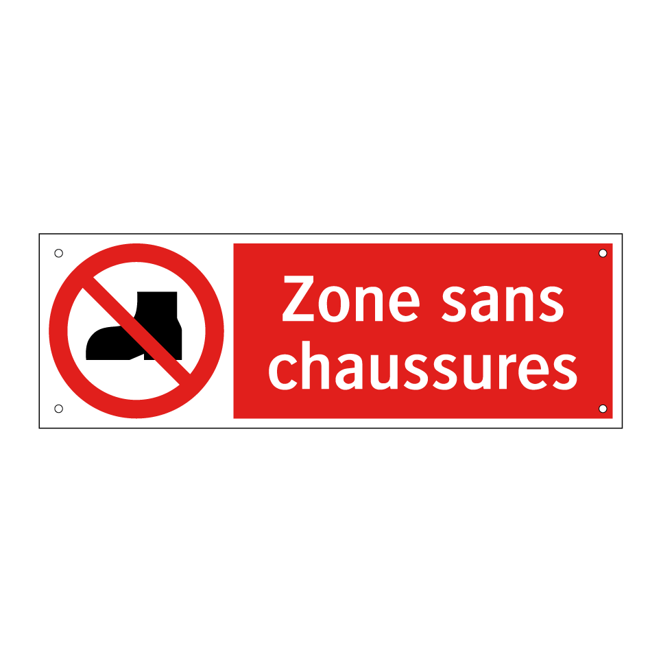 Panneau d'interdiction avec le texte : "Zone sans chaussures" et une symbolique claire.
