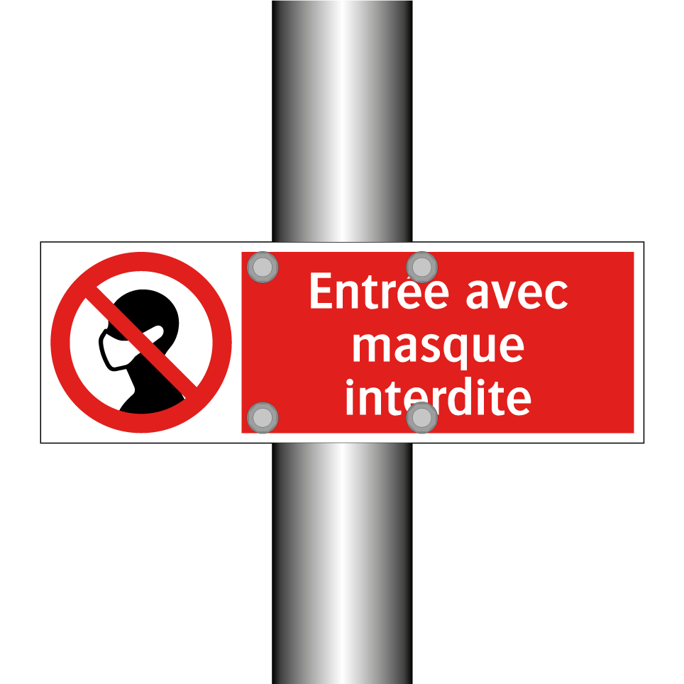 Cette pancarte de signalisation interdit l'accès aux personnes portant un masque. Elle est idéale pour être placée à l'entrée de lieux où le port du masque est proscrit, comme certains établissements de sécurité ou zones à accès restreint. En affichant ce message clair et direct, elle aide à maintenir les règles de sécurité et à éviter toute confusion. Installez-la à l'entrée principale ou dans les zones de passage pour garantir que les visiteurs respectent les consignes en vigueur.