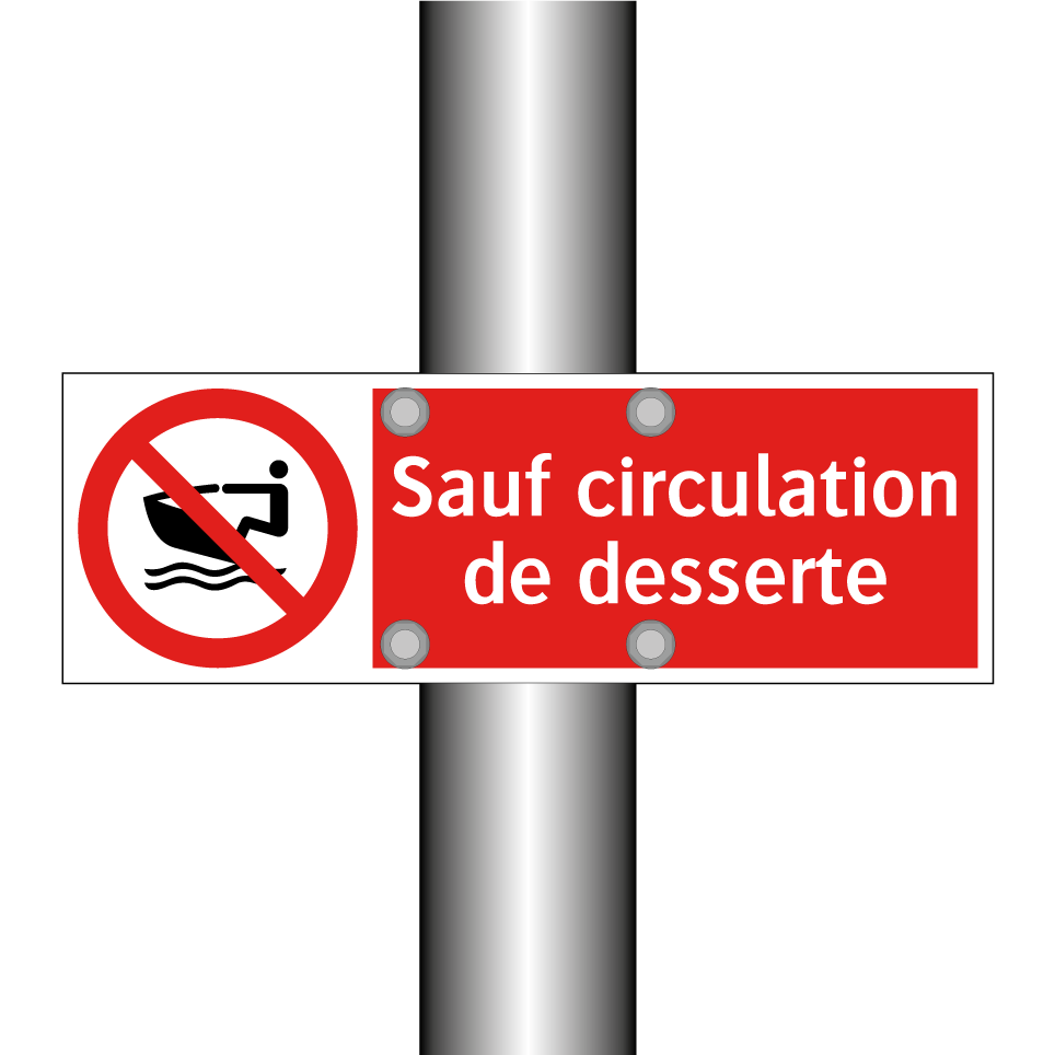 Panneau d'interdiction avec le texte : "Sauf circulation de desserte" et une symbolique claire.