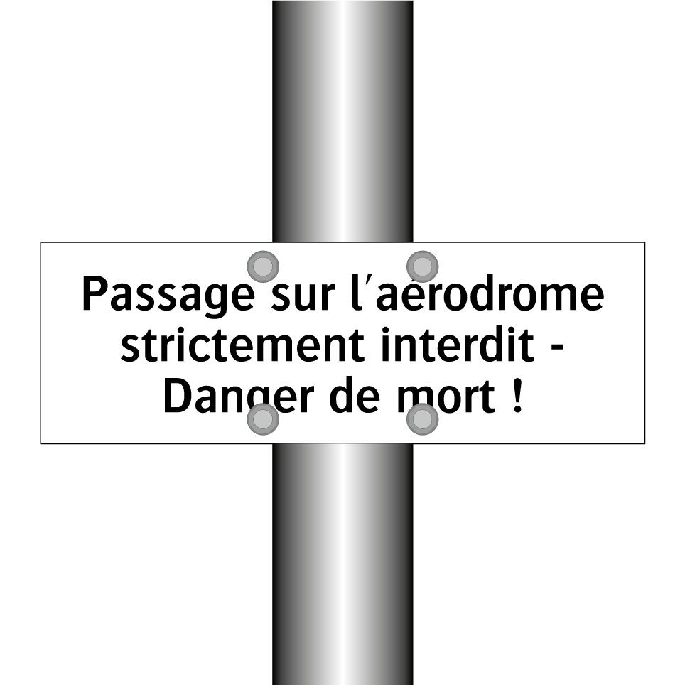 Panneau d'interdiction avec le texte : "Passage sur l'aérodrome strictement interdit - Danger de mort !"