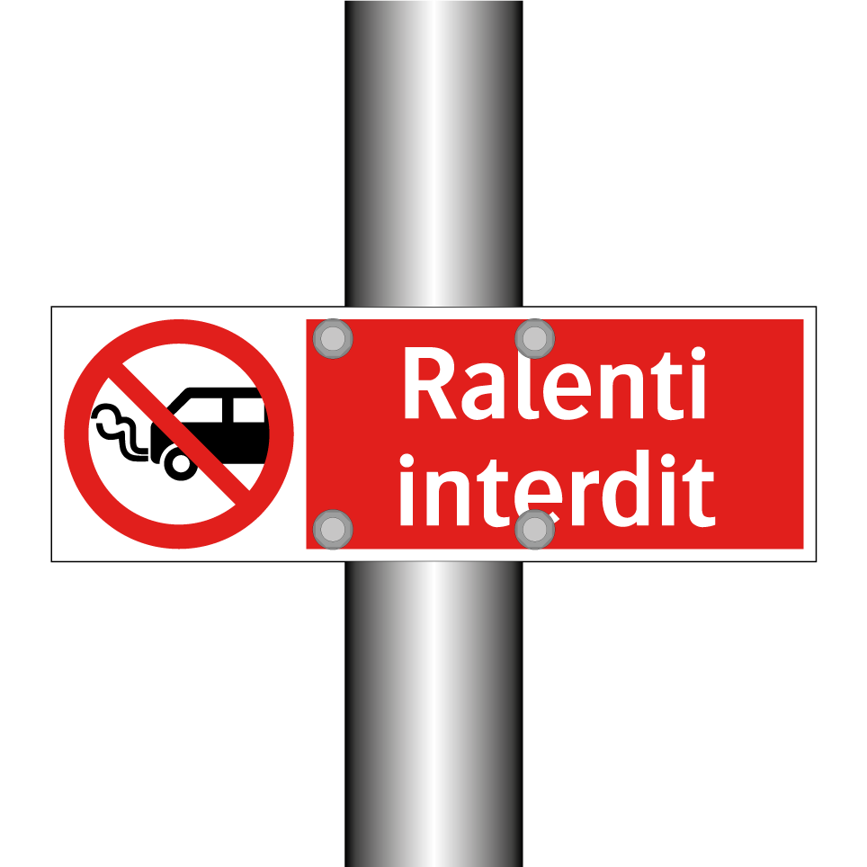 Panneau d'interdiction avec le texte : "Ralenti interdit" et une symbolique claire.