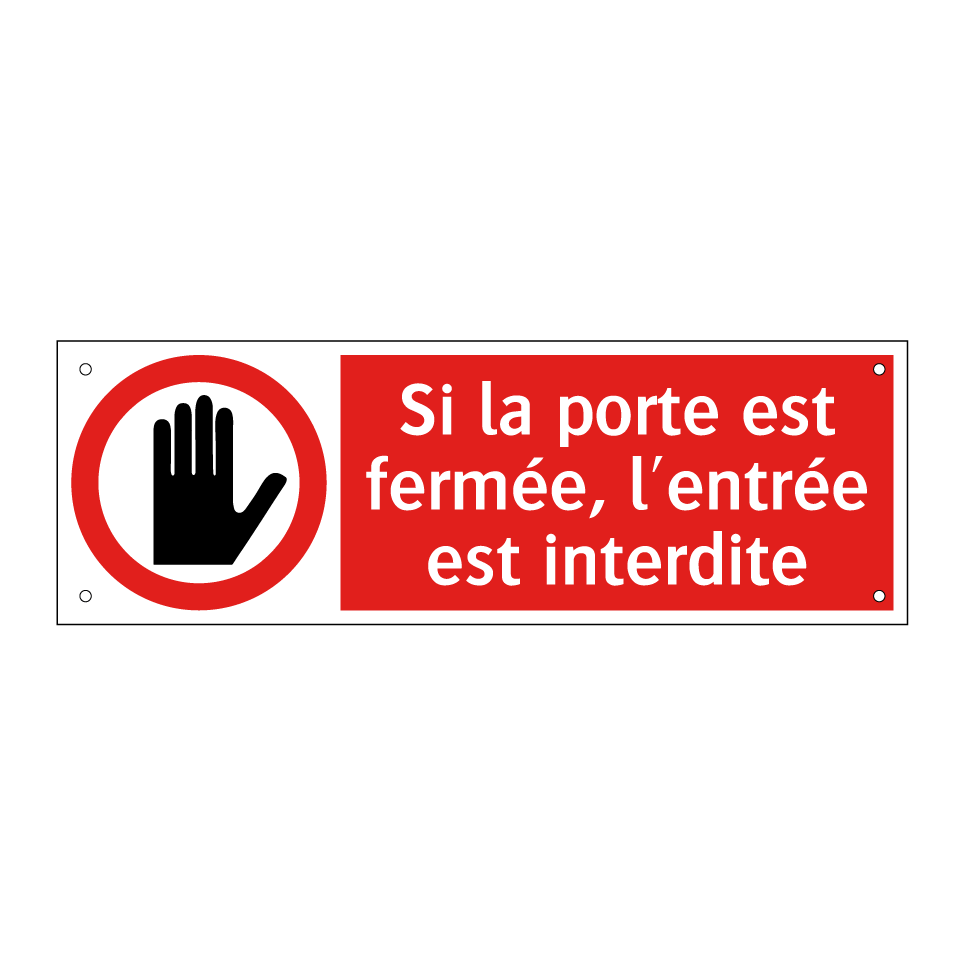 Panneau d'interdiction avec le texte : "Si la porte est fermée, l'entrée est interdite" et une symbolique claire.