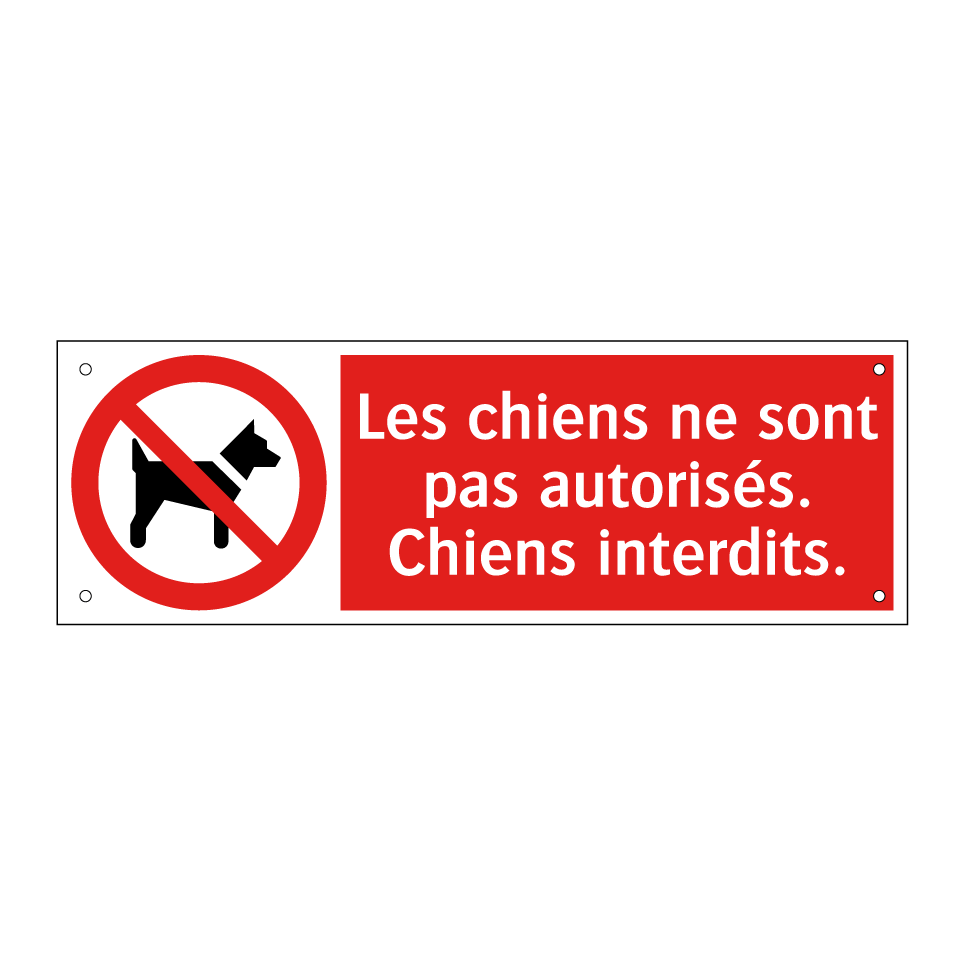 Panneau d'interdiction avec le texte : "Les chiens ne sont pas autorisés. Chiens interdits." et une symbolique claire.