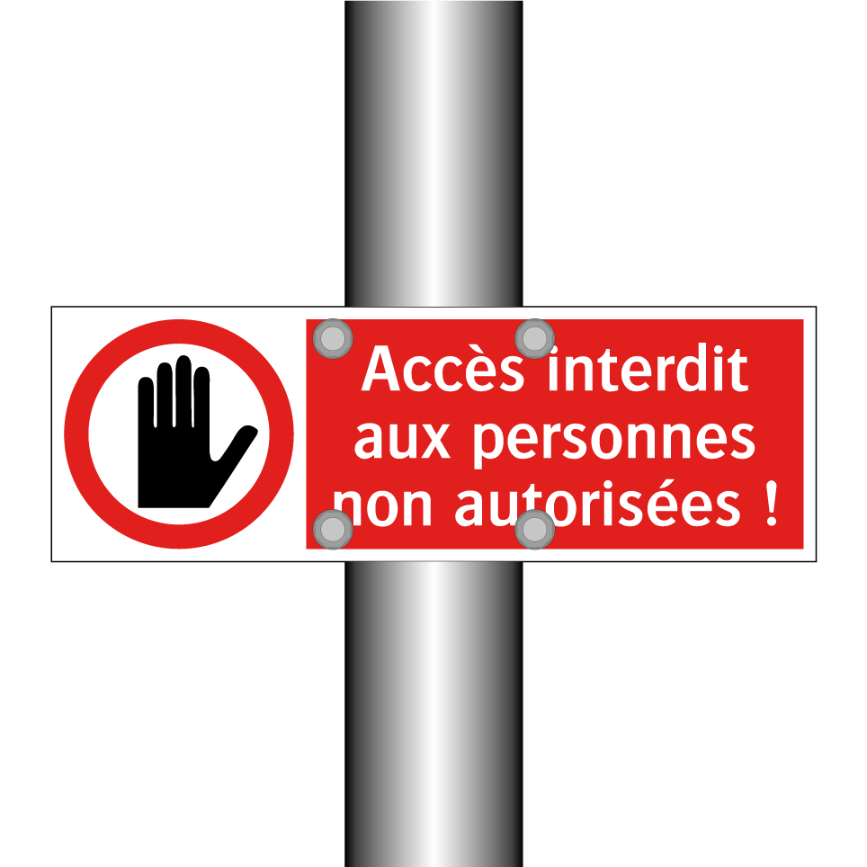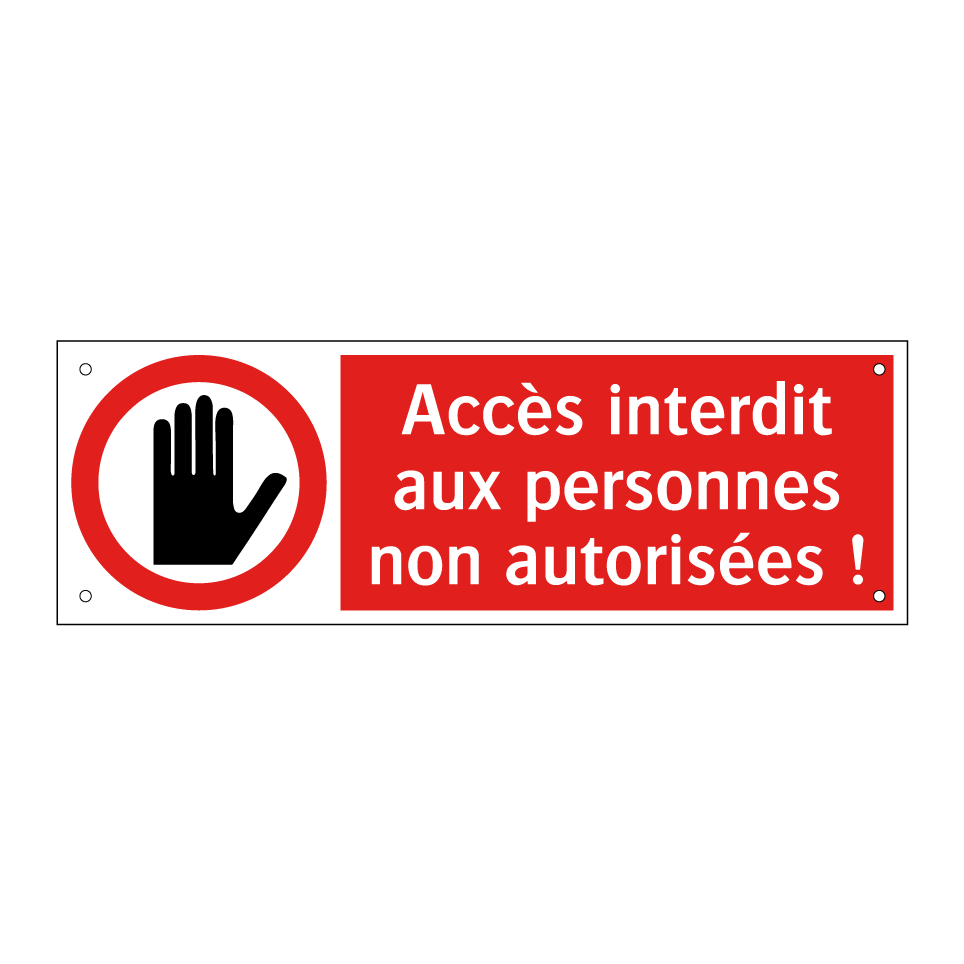 Panneau d'interdiction avec le texte : "Accès interdit aux personnes non autorisées !" et une symbolique claire.