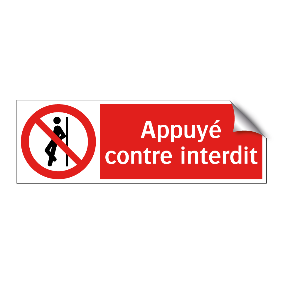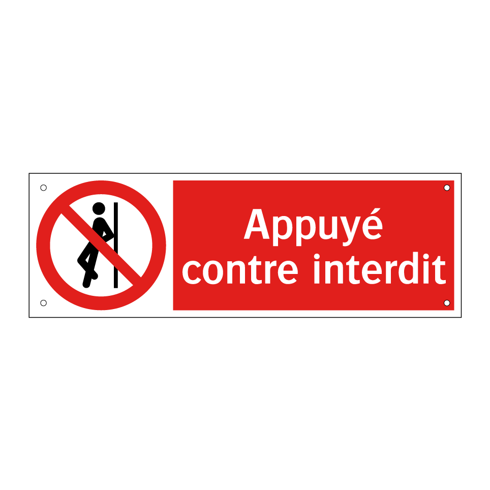 Panneau d'interdiction avec le texte : "Appuyé contre interdit" et une symbolique claire.