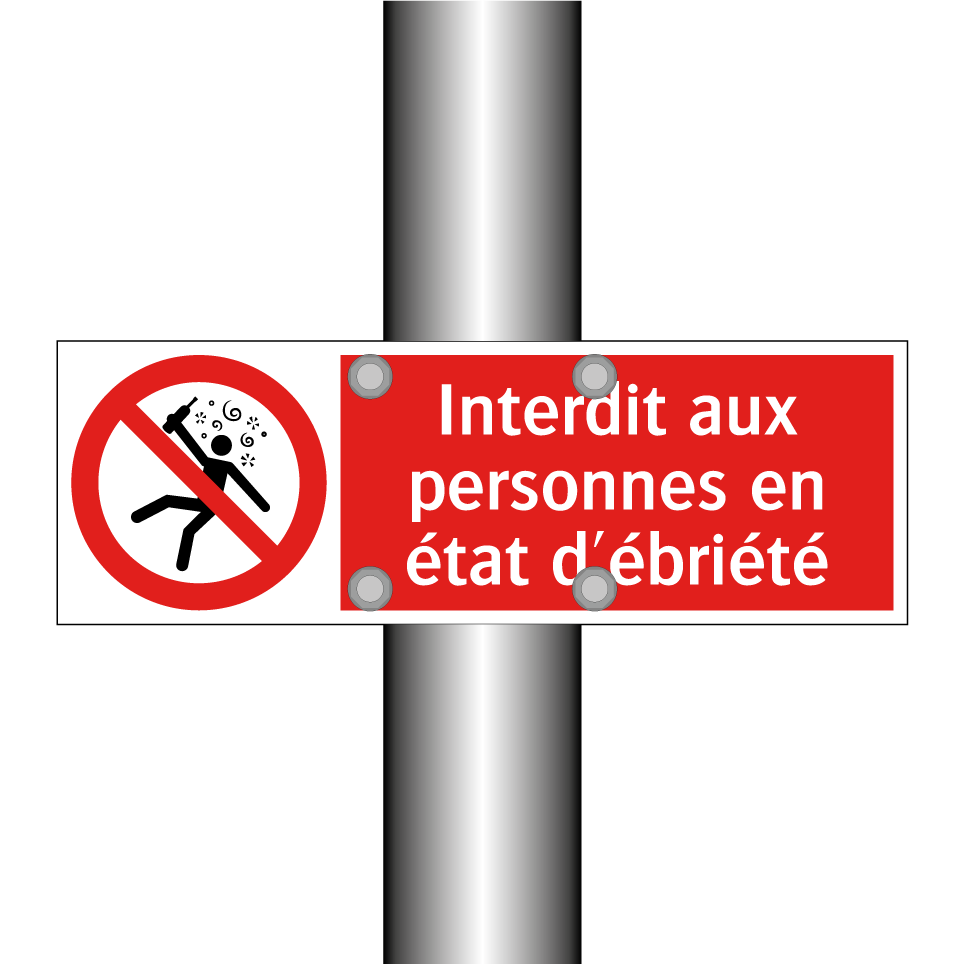 Panneau d'interdiction avec le texte : "Interdit aux personnes en état d'ébriété" et une symbolique claire.