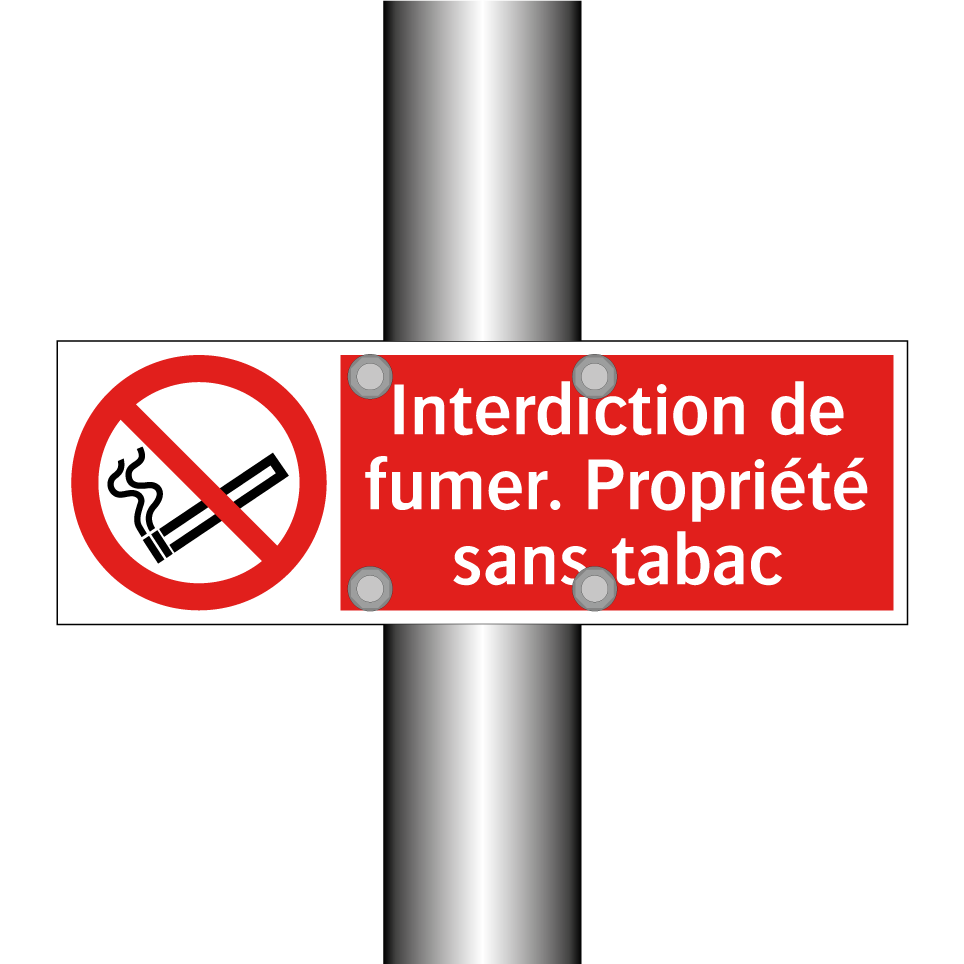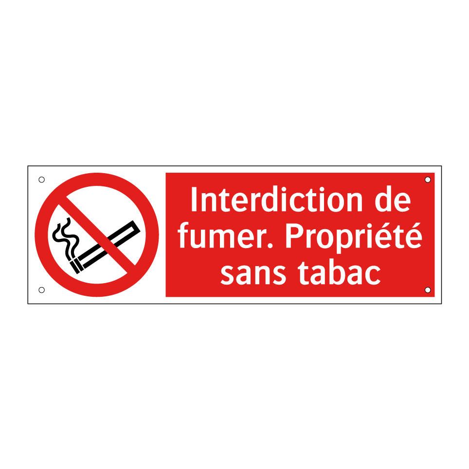 Panneau d'interdiction avec le texte : "Interdiction de fumer. Propriété sans tabac" et une symbolique claire.