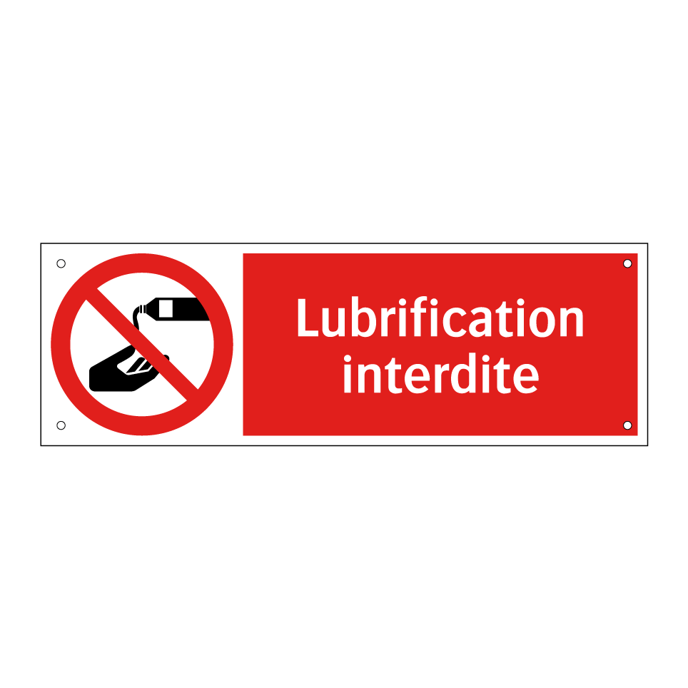 Panneau d'interdiction avec le texte : "Lubrification interdite" et une symbolique claire.