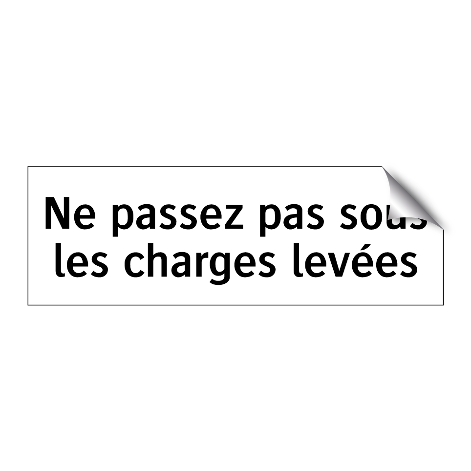 Panneau d'interdiction avec le texte : "Ne passez pas sous les charges levées"