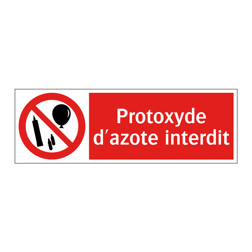 Panneau d'interdiction avec le texte : "Protoxyde d'azote interdit" et une symbolique claire.