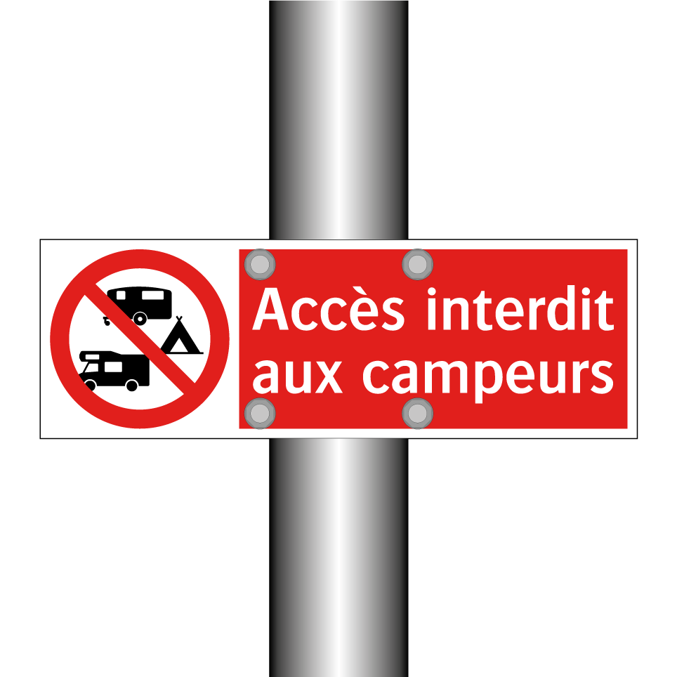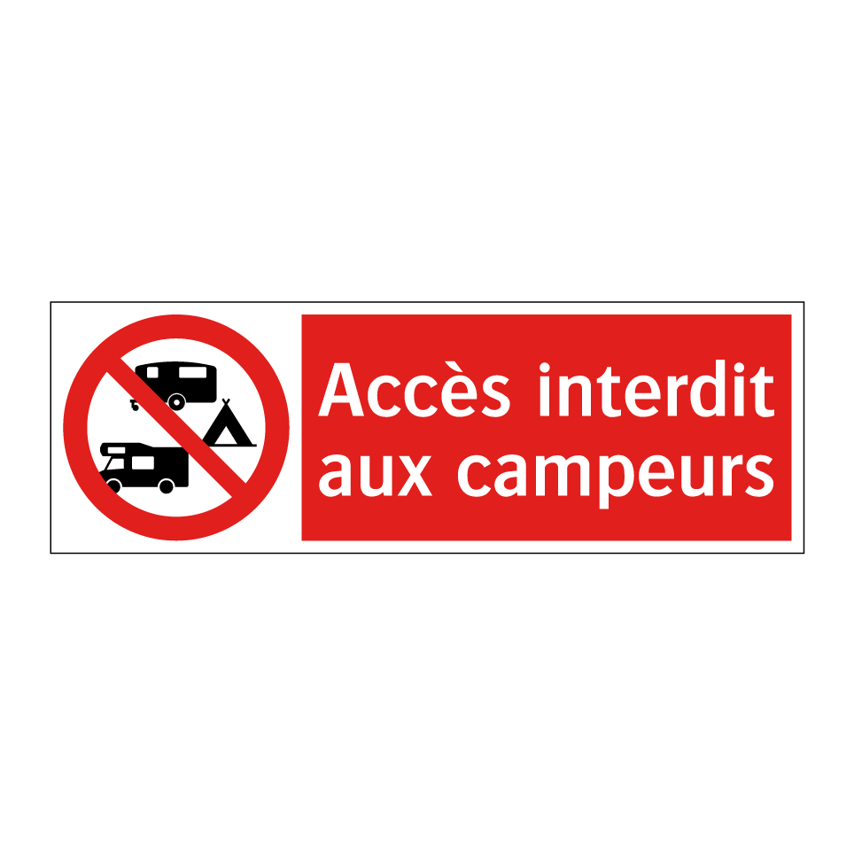 Panneau d'interdiction avec le texte : "Accès interdit aux campeurs" et une symbolique claire.