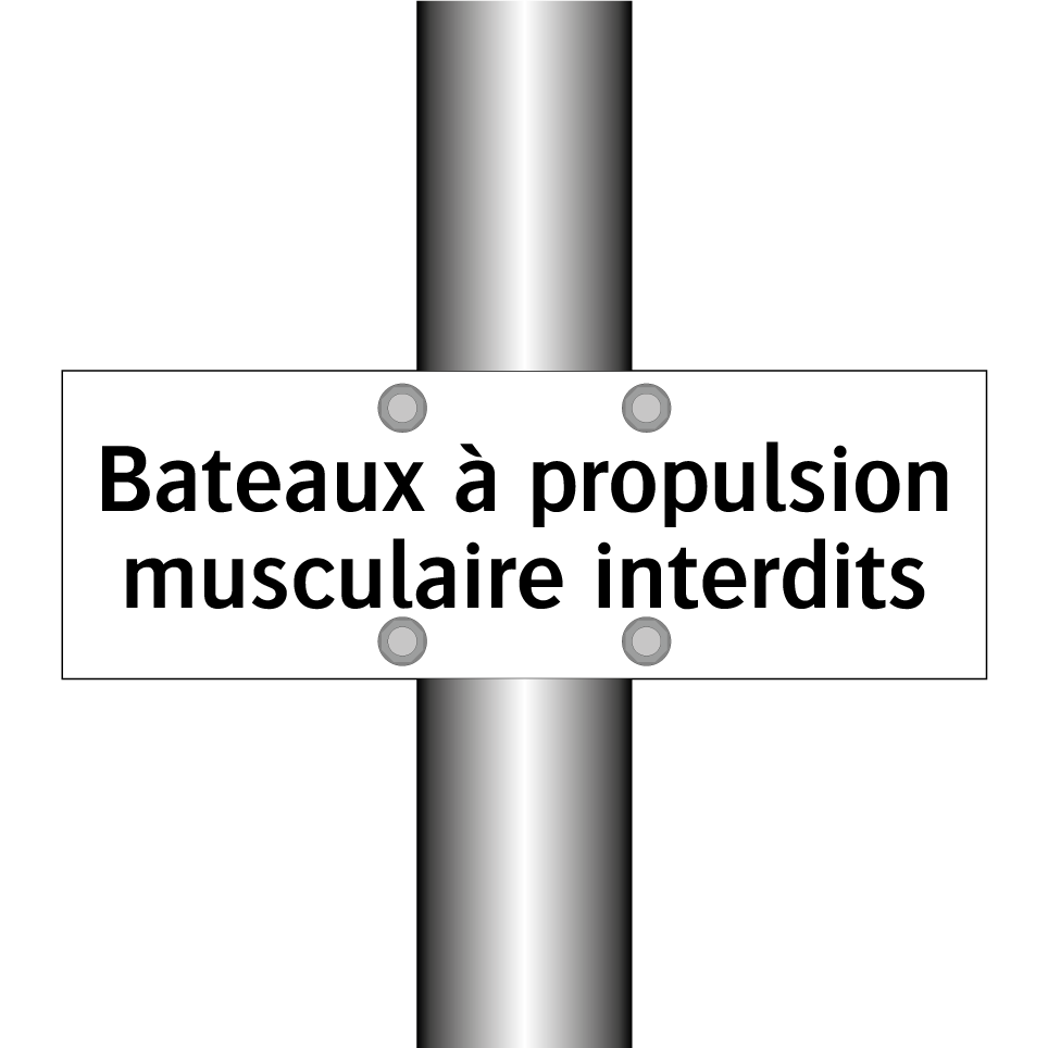 Panneau d'interdiction avec le texte : "Bateaux à propulsion musculaire interdits"