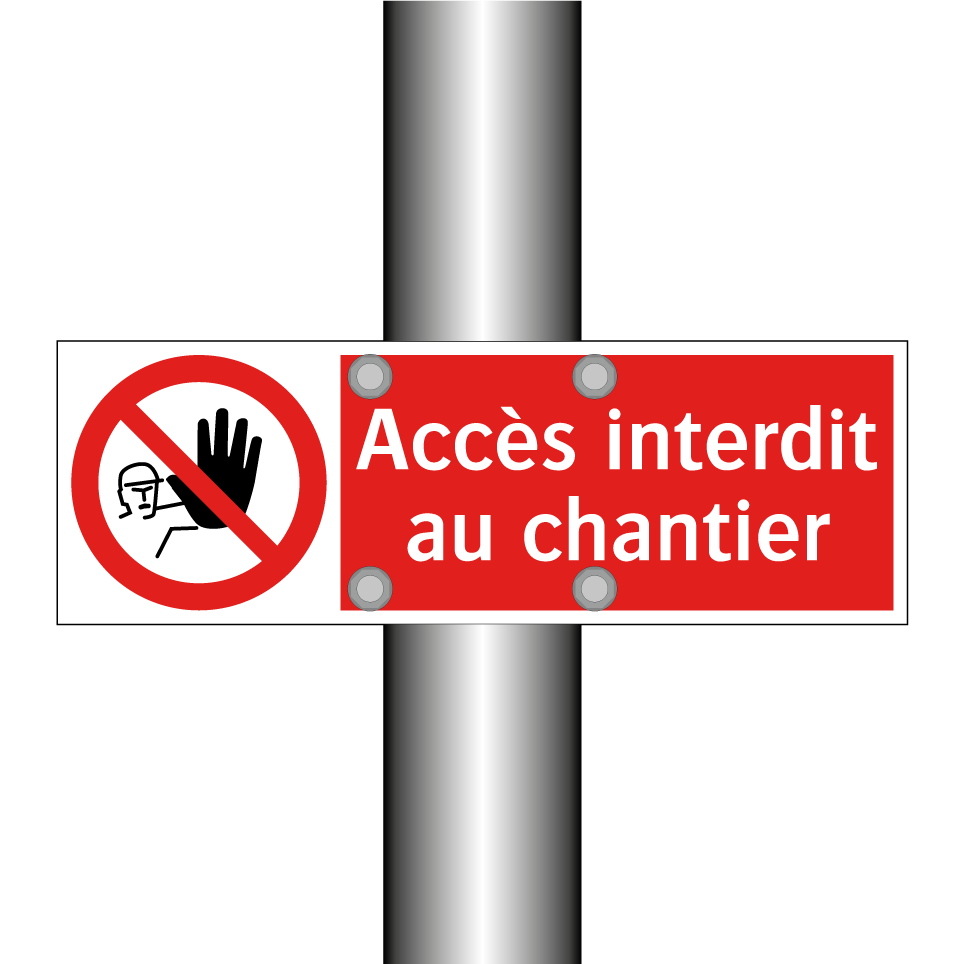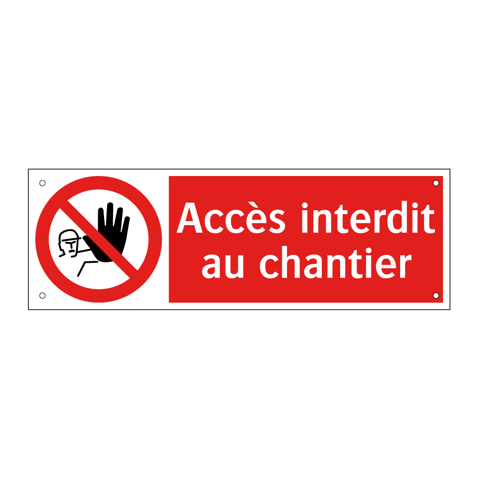 Panneau d'interdiction avec le texte : "Accès interdit au chantier" et une symbolique claire.