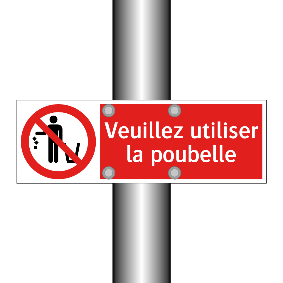 Panneau d'interdiction avec le texte : "Veuillez utiliser la poubelle" et une symbolique claire.