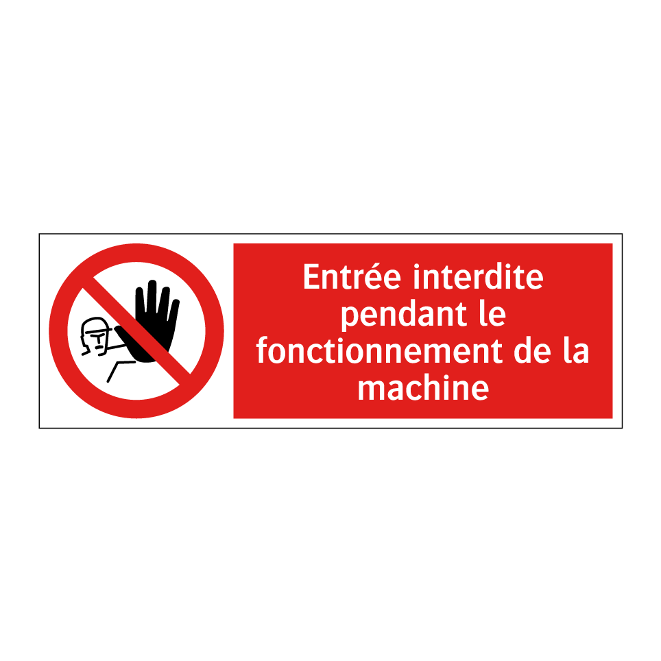 Panneau d'interdiction avec le texte : "Entrée interdite pendant le fonctionnement de la machine" et une symbolique claire.