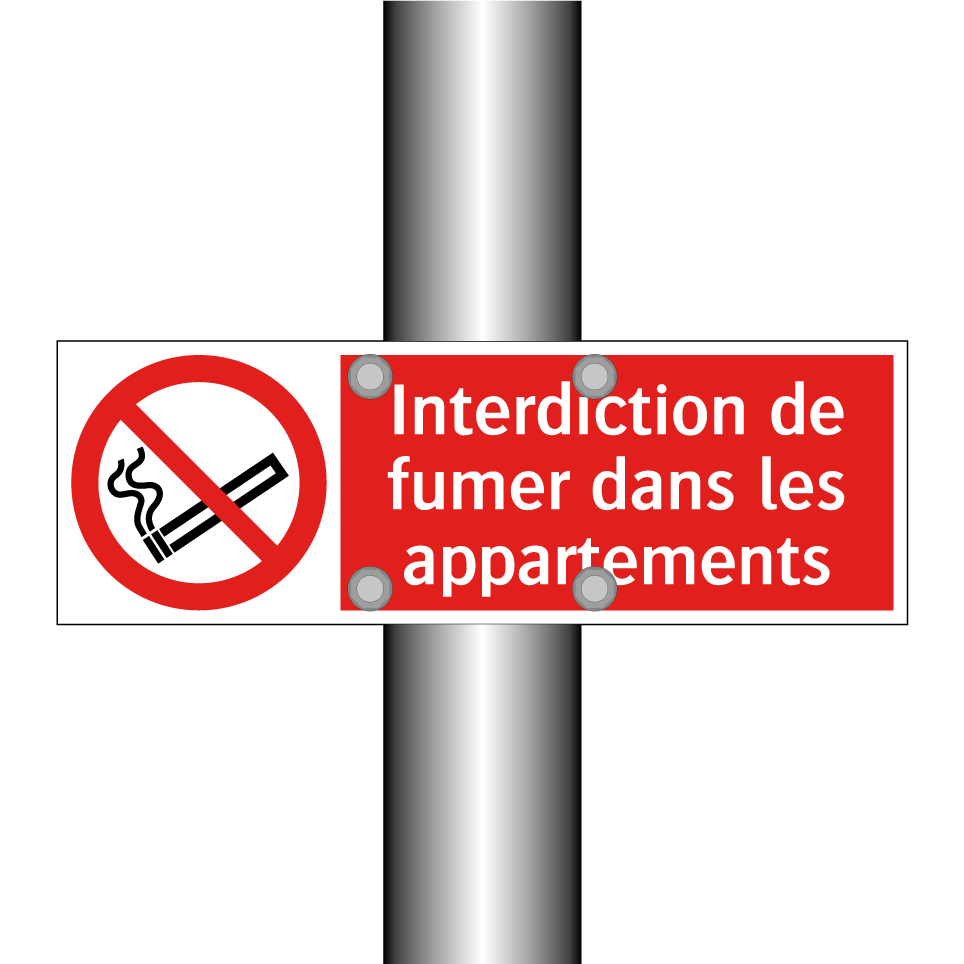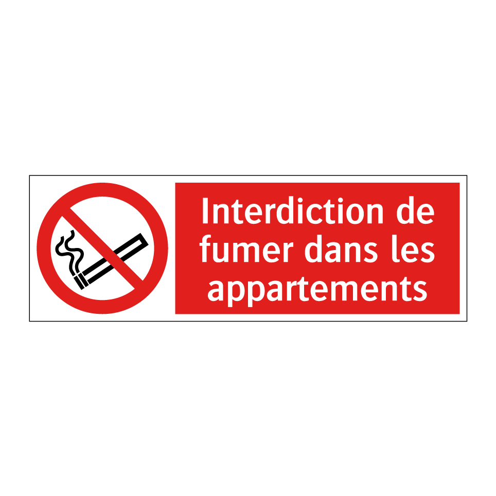 Panneau d'interdiction avec le texte : "Interdiction de fumer dans les appartements" et une symbolique claire.