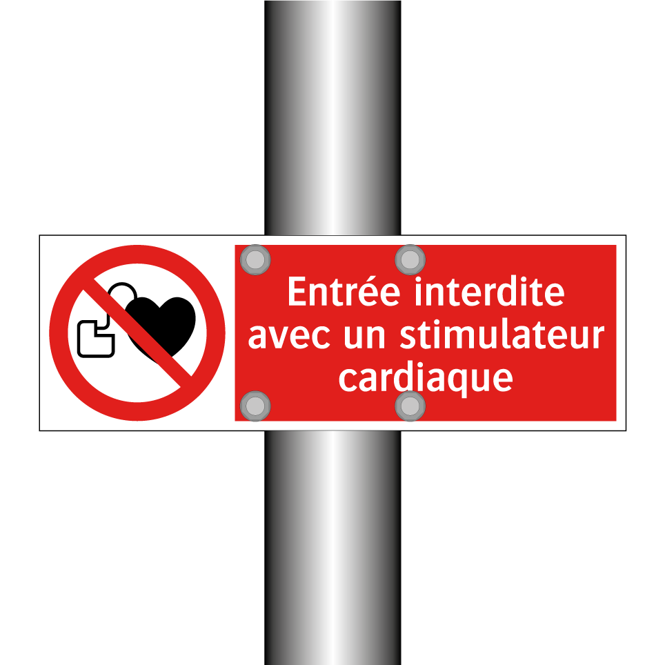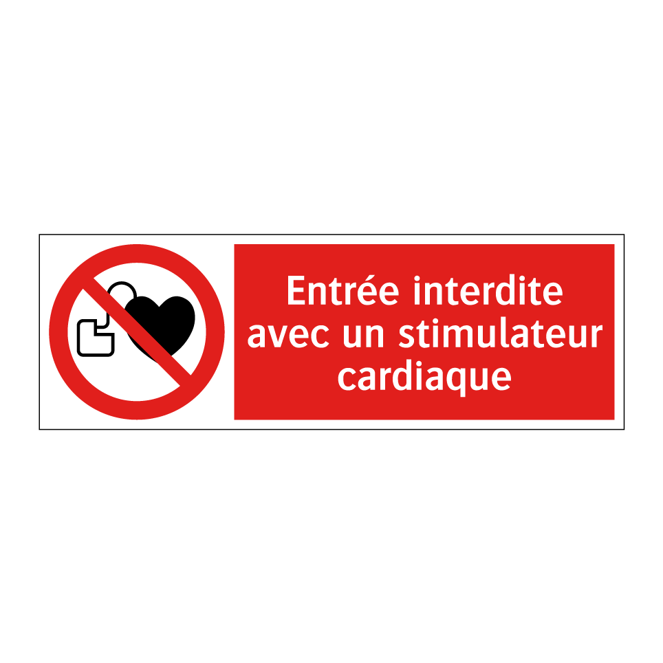 Panneau d'interdiction avec le texte : "Entrée interdite avec un stimulateur cardiaque" et une symbolique claire.