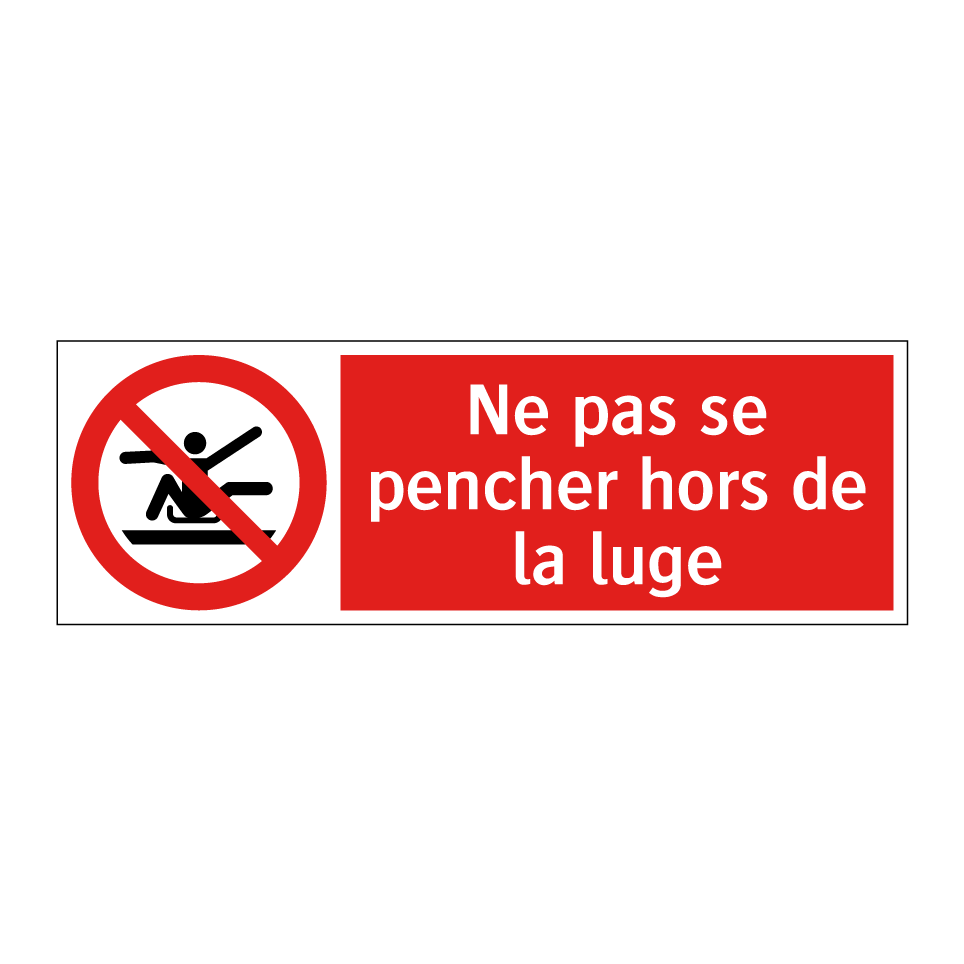Panneau d'interdiction avec le texte : "Ne pas se pencher hors de la luge" et une symbolique claire.
