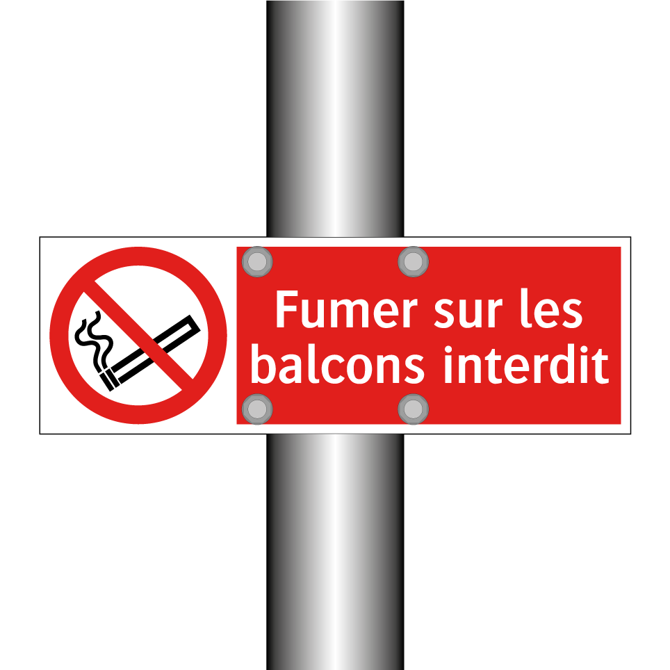 Panneau d'interdiction avec le texte : "Fumer sur les balcons interdit" et une symbolique claire.