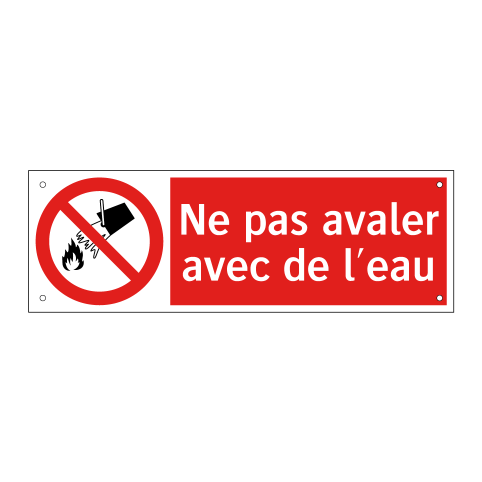 Panneau d'interdiction avec le texte : "Ne pas avaler avec de l'eau" et une symbolique claire.