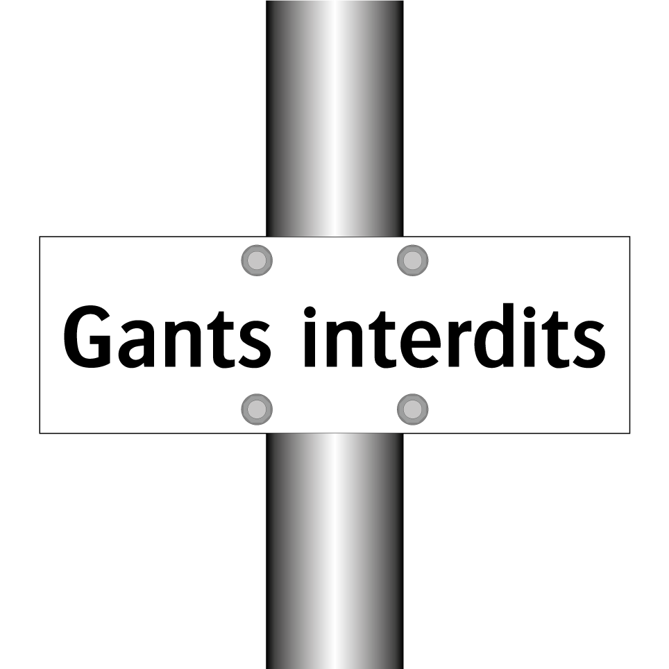 Panneau d'interdiction avec le texte : "Gants interdits"