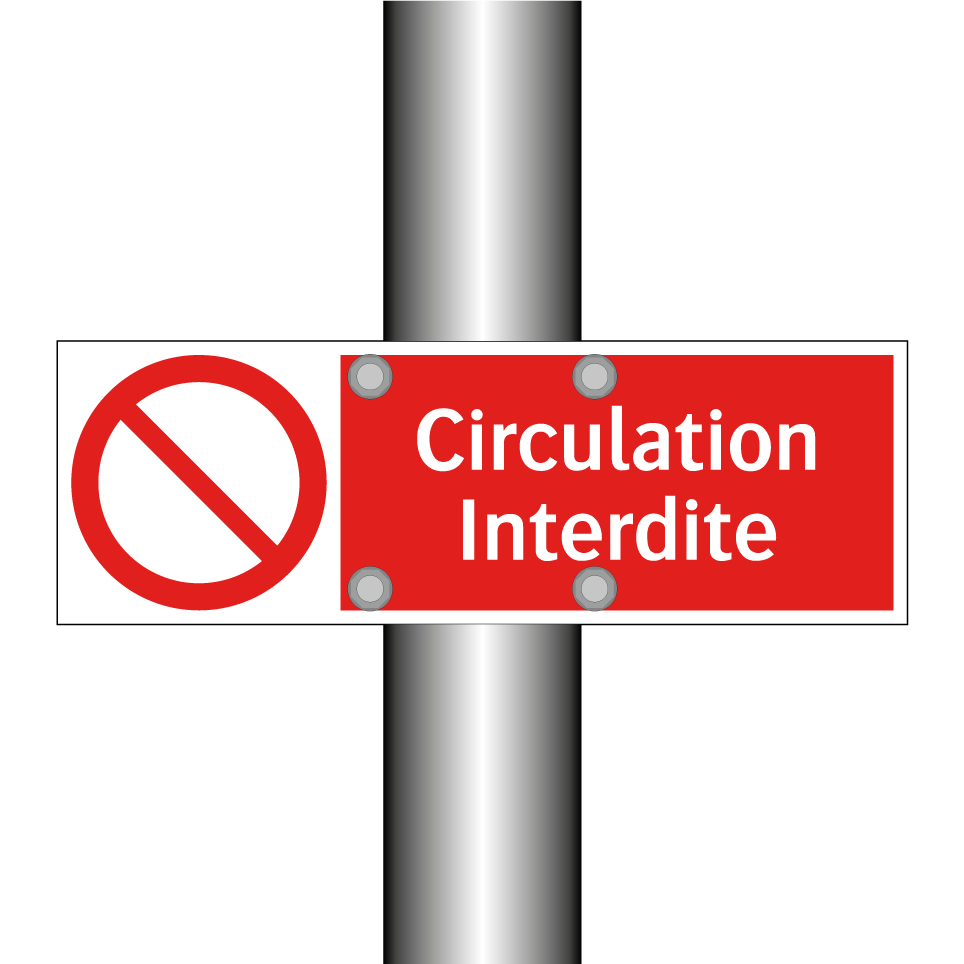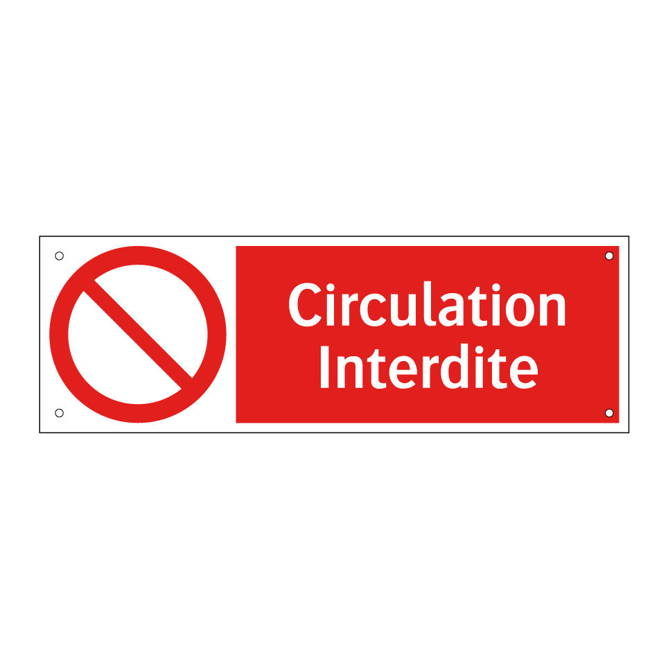 Panneau d'interdiction avec le texte : "Circulation Interdite" et une symbolique claire.