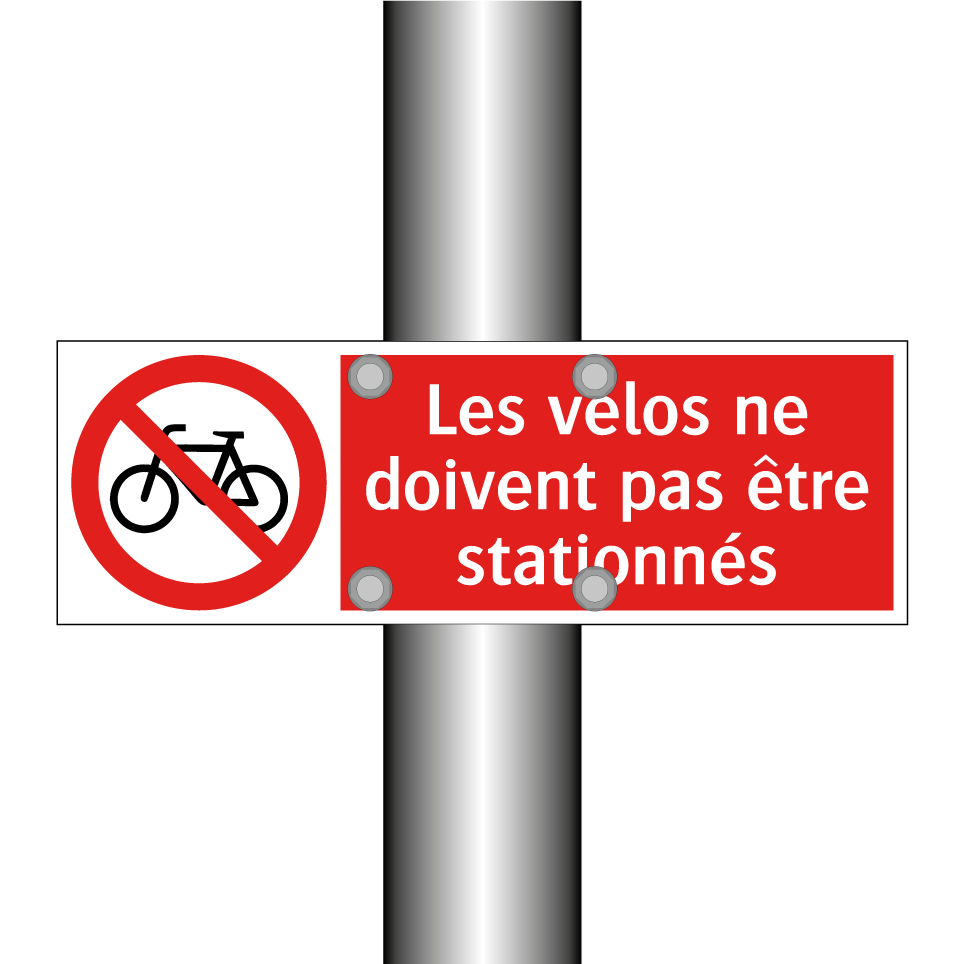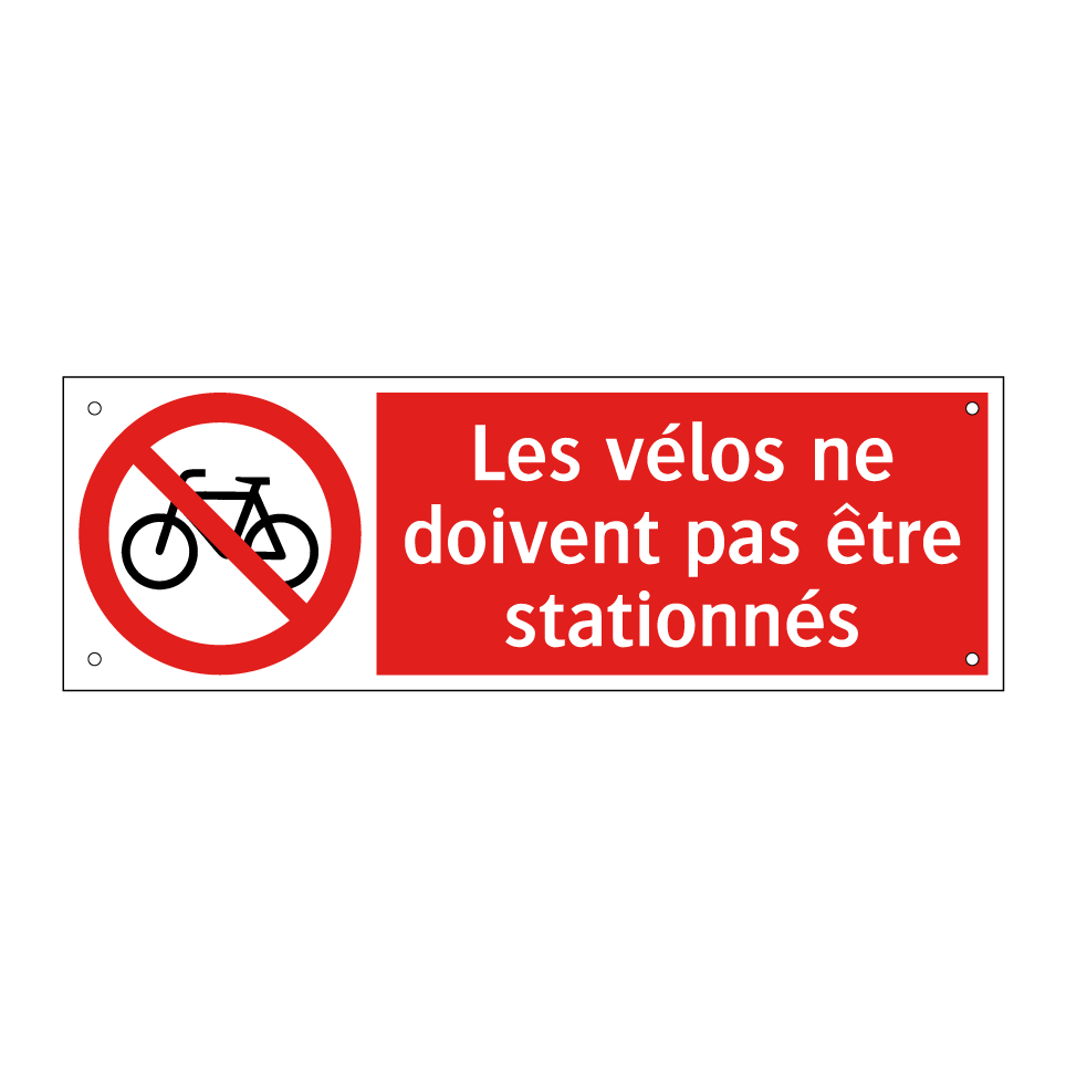 Panneau d'interdiction avec le texte : "Les vélos ne doivent pas être stationnés" et une symbolique claire.