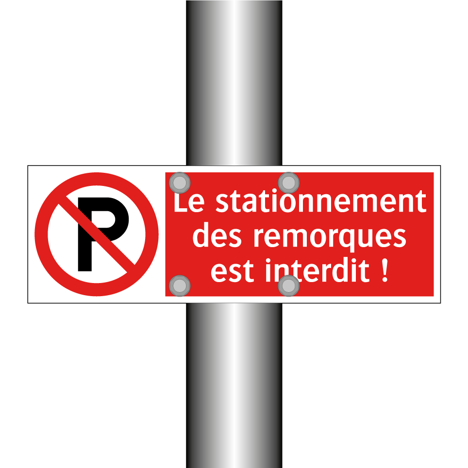 Panneau d'interdiction avec le texte : "Le stationnement des remorques est interdit !" et une symbolique claire.