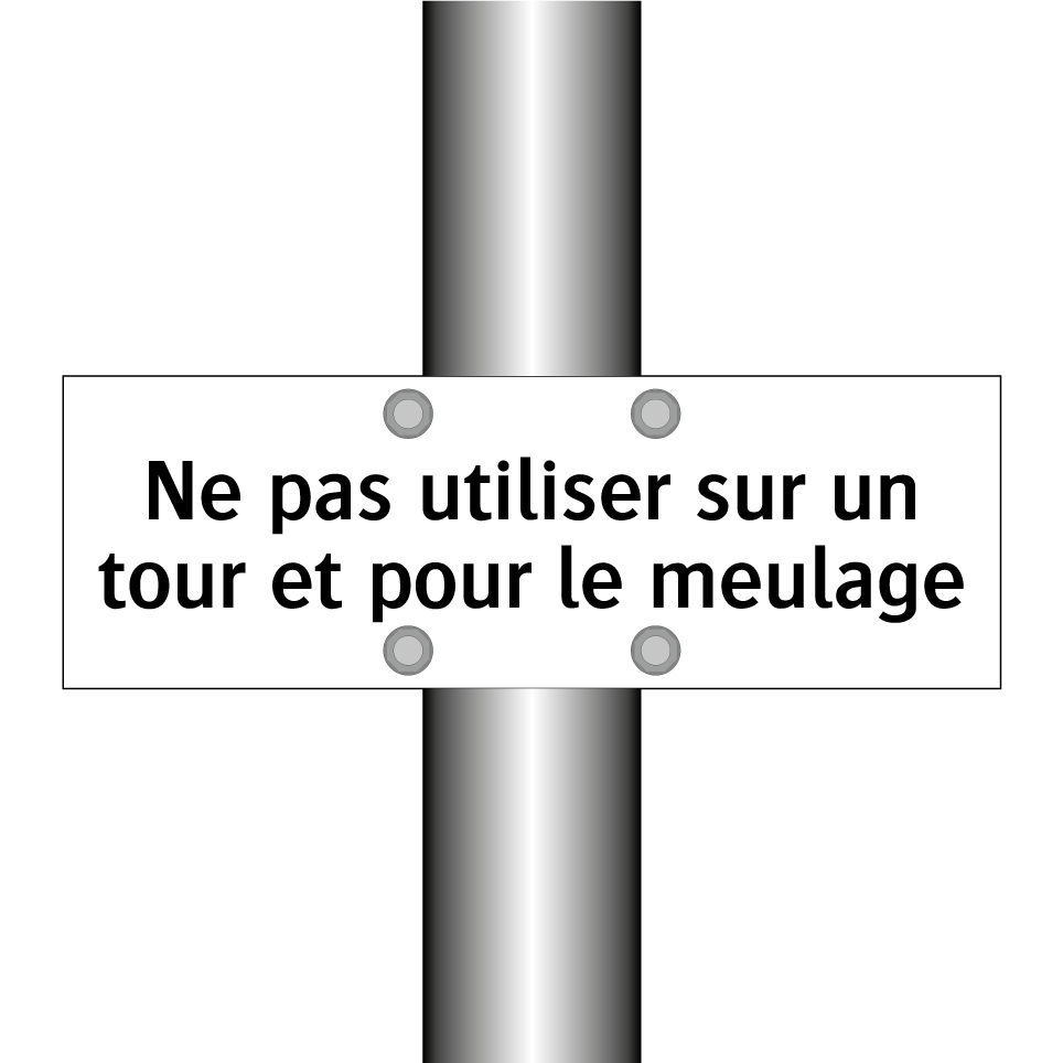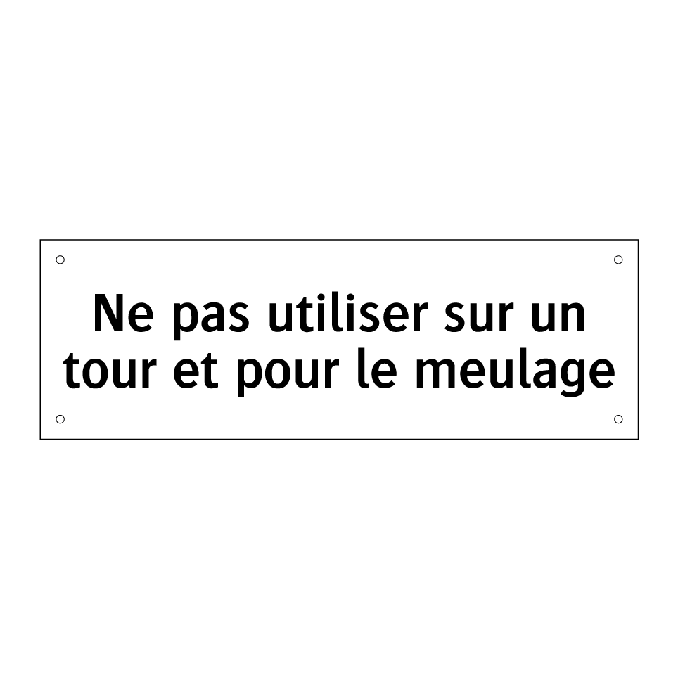 Panneau d'interdiction avec le texte : "Ne pas utiliser sur un tour et pour le meulage"