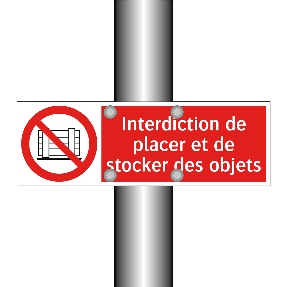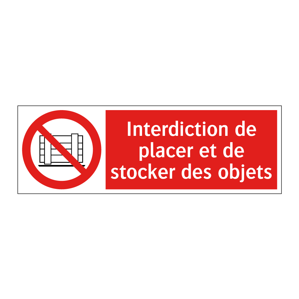 Panneau d'interdiction avec le texte : "Interdiction de placer et de stocker des objets" et une symbolique claire.