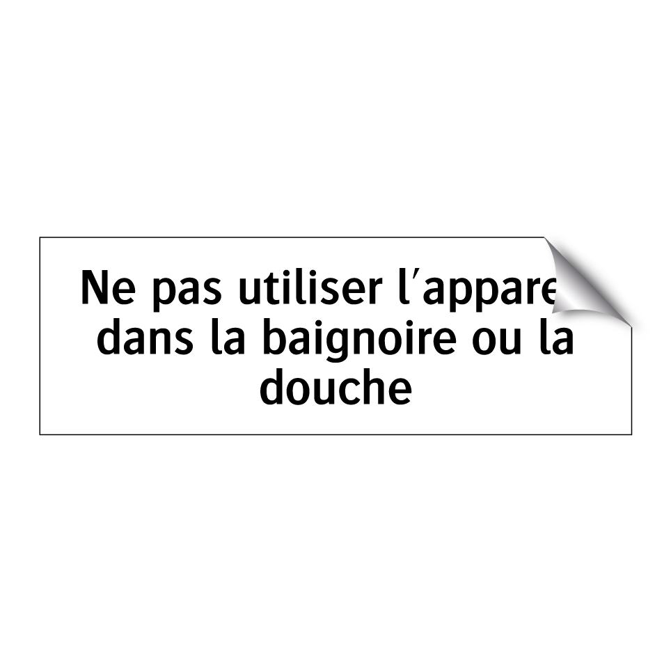 Panneau d'interdiction avec le texte : "Ne pas utiliser l'appareil dans la baignoire ou la douche"