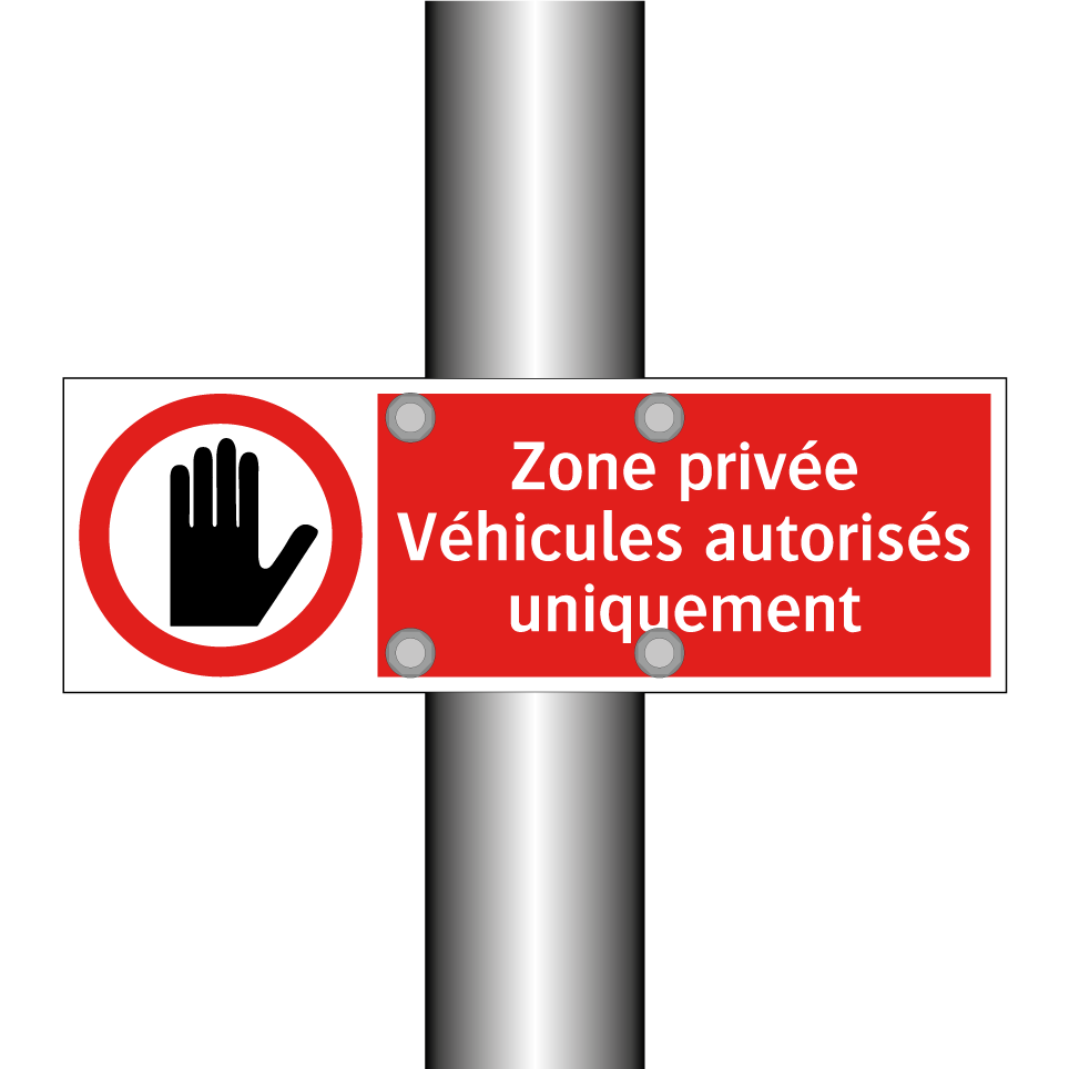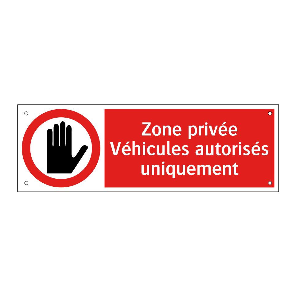 Panneau d'interdiction avec le texte : "Zone privée Véhicules autorisés uniquement" et une symbolique claire.