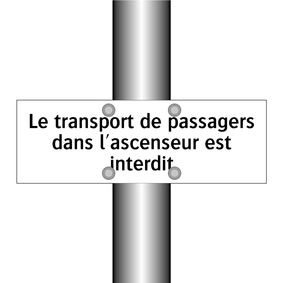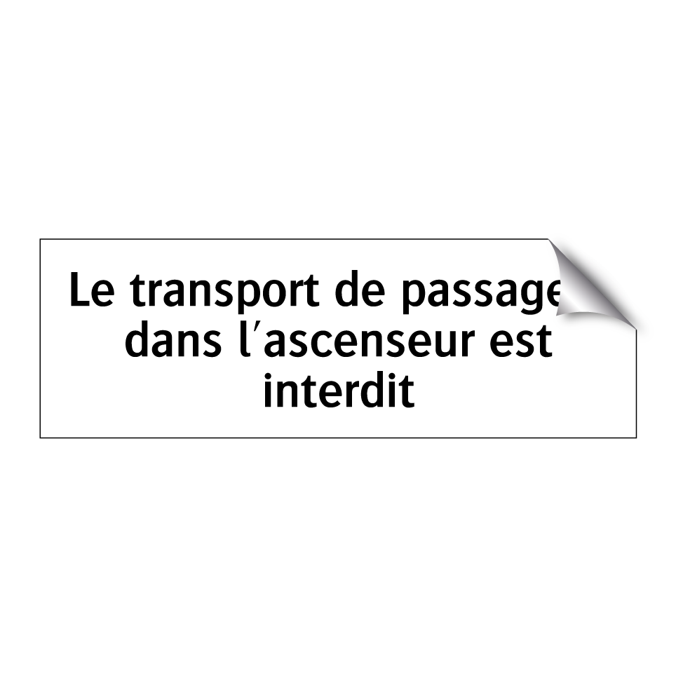 Panneau d'interdiction avec le texte : "Le transport de passagers dans l'ascenseur est interdit"