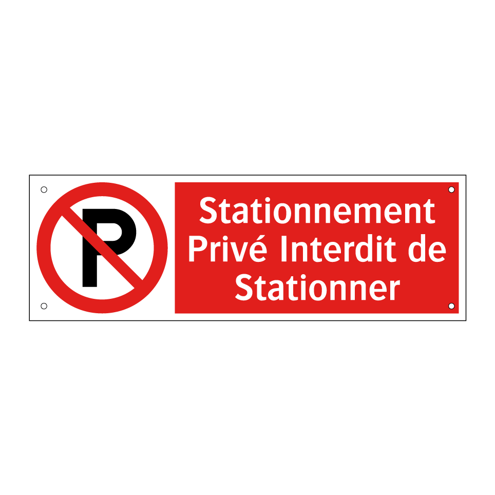 Panneau d'interdiction avec le texte : "Stationnement Privé Interdit de Stationner" et une symbolique claire.