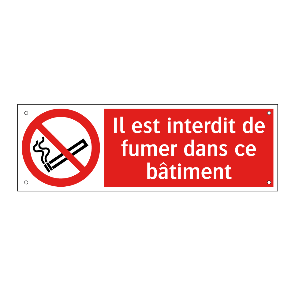 Panneau d'interdiction avec le texte : "Il est interdit de fumer dans ce bâtiment" et une symbolique claire.