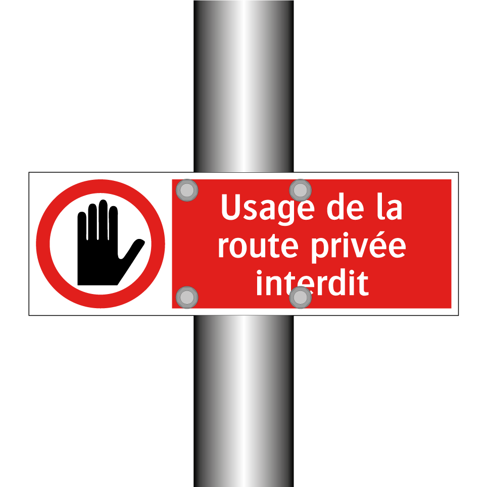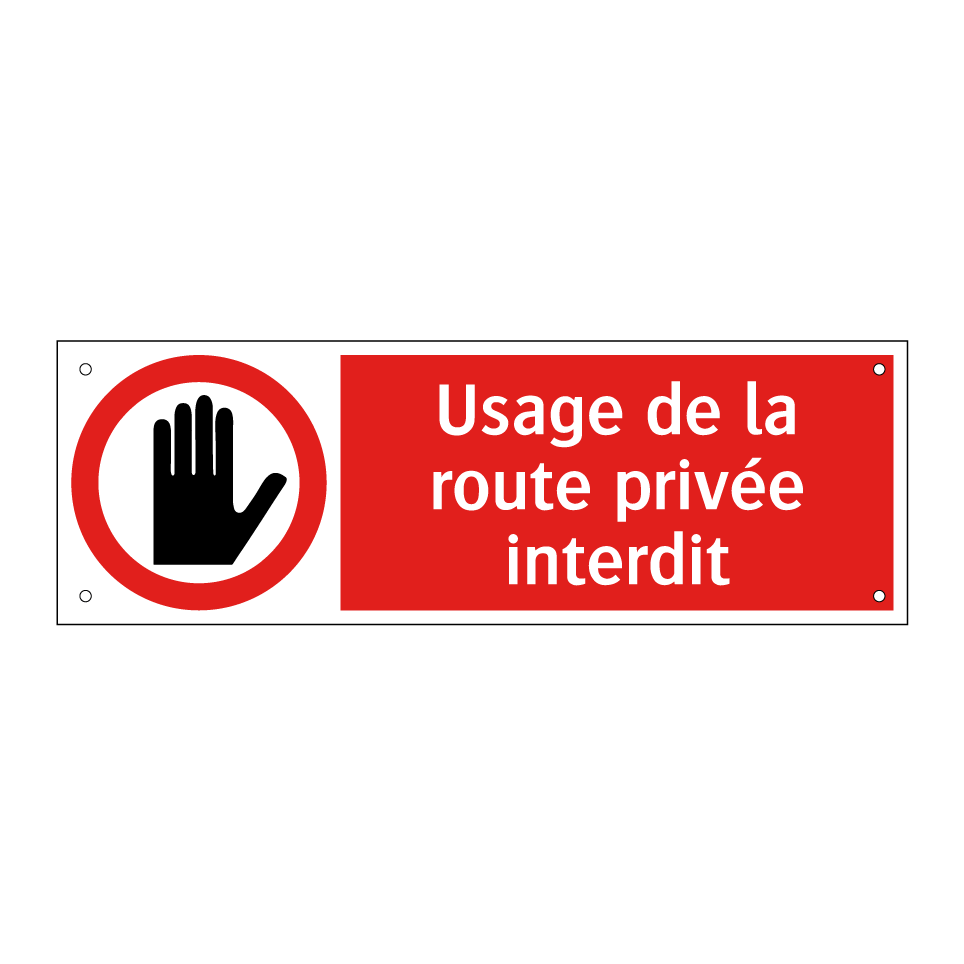 Panneau d'interdiction avec le texte : "Usage de la route privée interdit" et une symbolique claire.