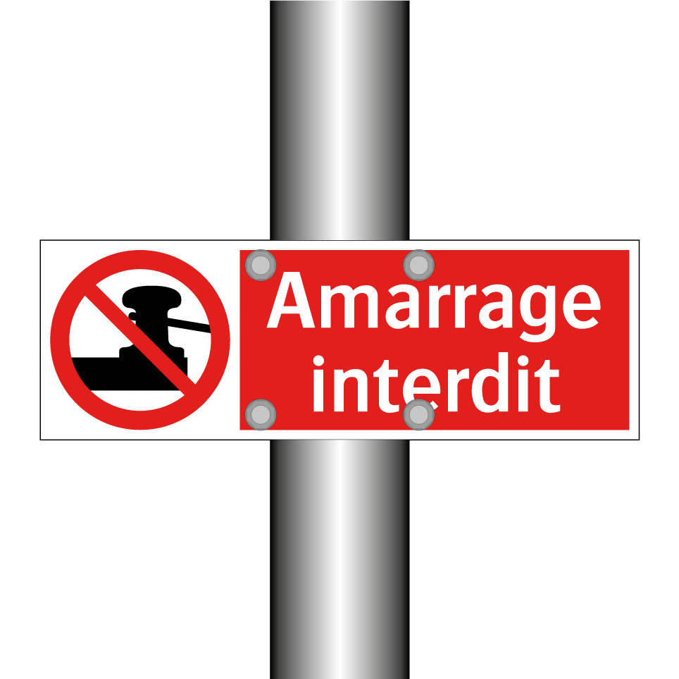 Panneau d'interdiction avec le texte : "Amarrage interdit" et une symbolique claire.